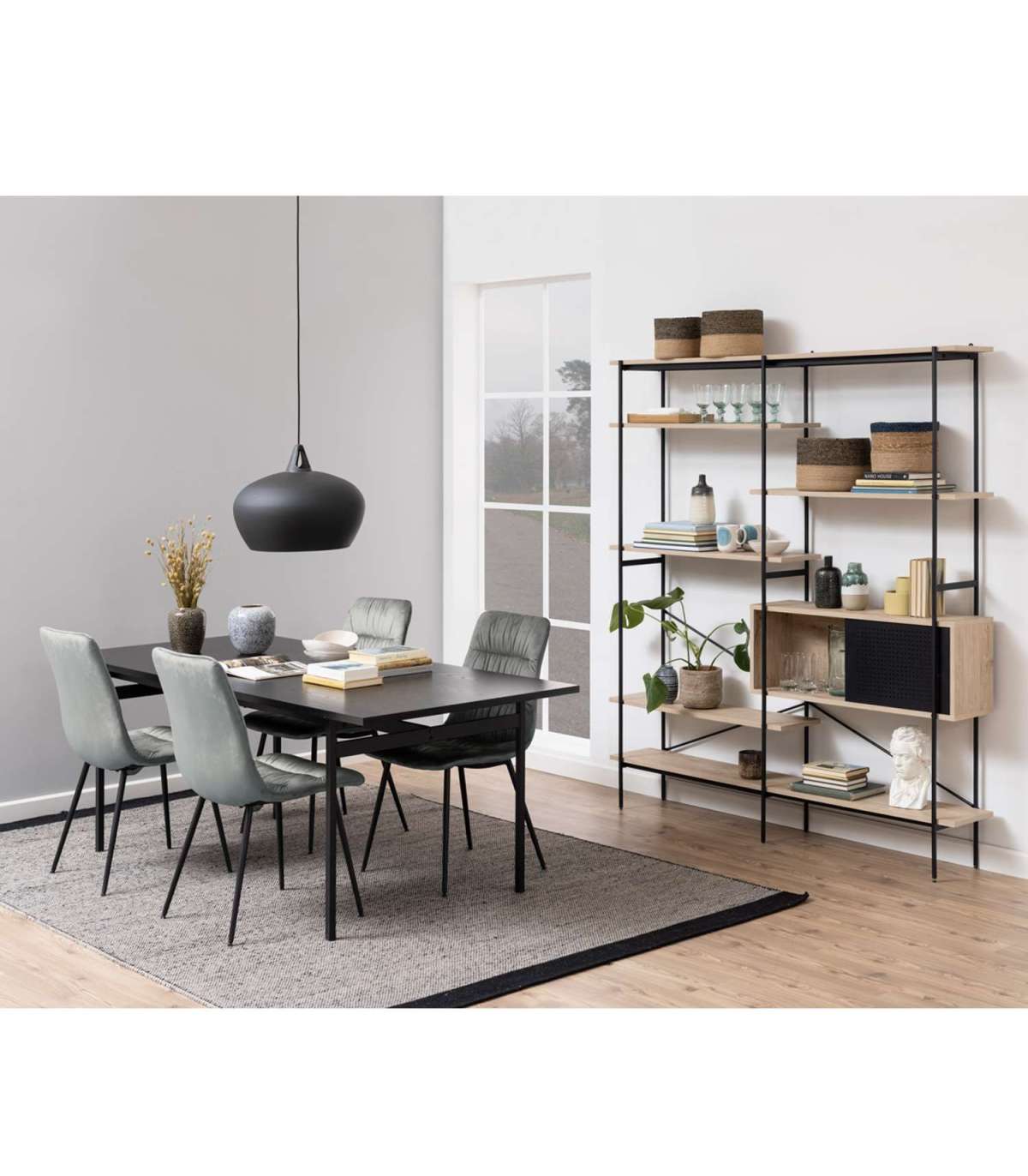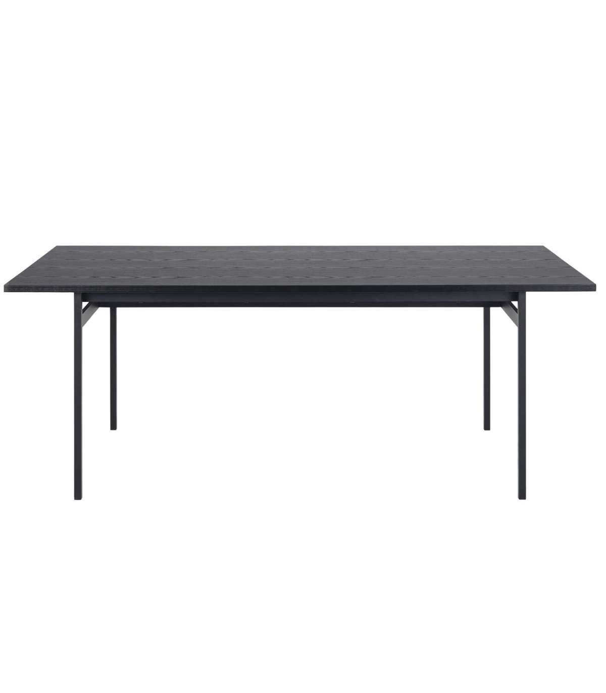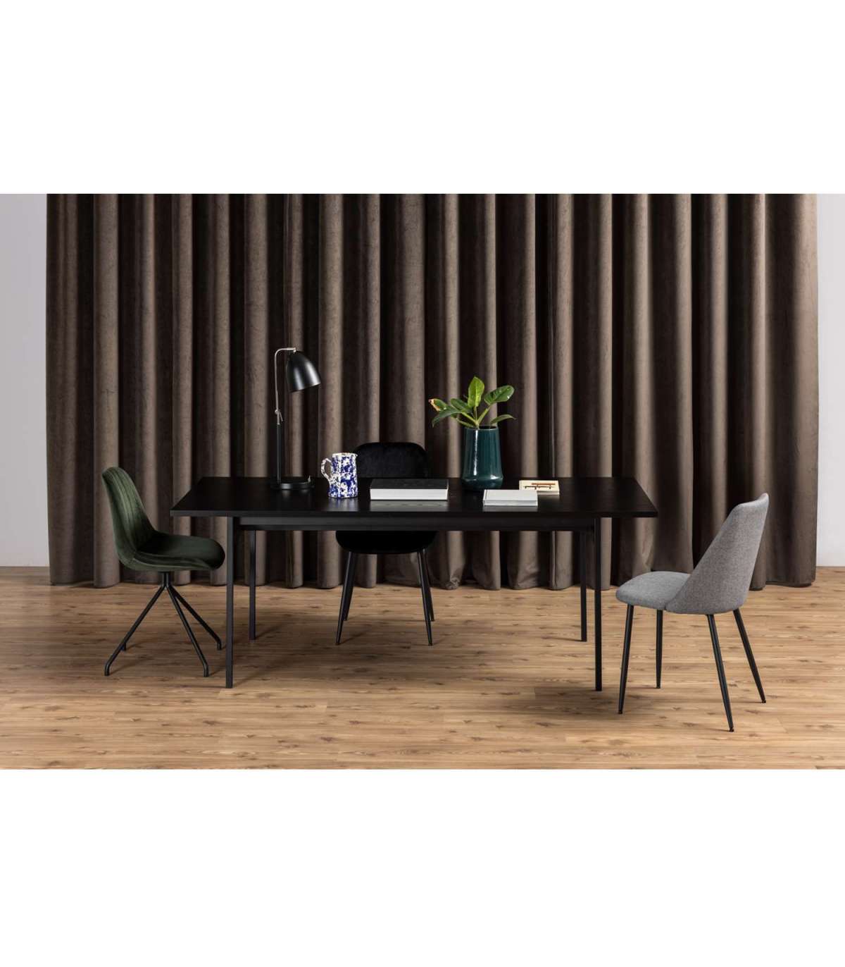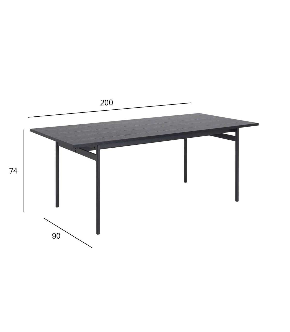 Söögilauda iseloomustavad selged jooned ja kerge struktuur. Moodne laud sobib paljudesse interjööridesse. Pulbervärvitud metalljalad toetavad musta värvi saarepuu ilmega lauaplaati. Lauaplaat: melamiin, alus: pulbervärvitud metall. Mõõdud on 200x90xH74cm.