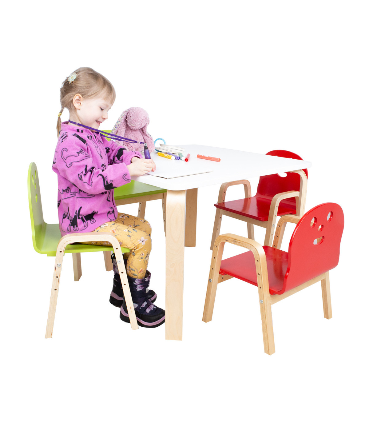 Lastekomplekt HAPPY laud ja 2 tooli, valge/punane/roheline