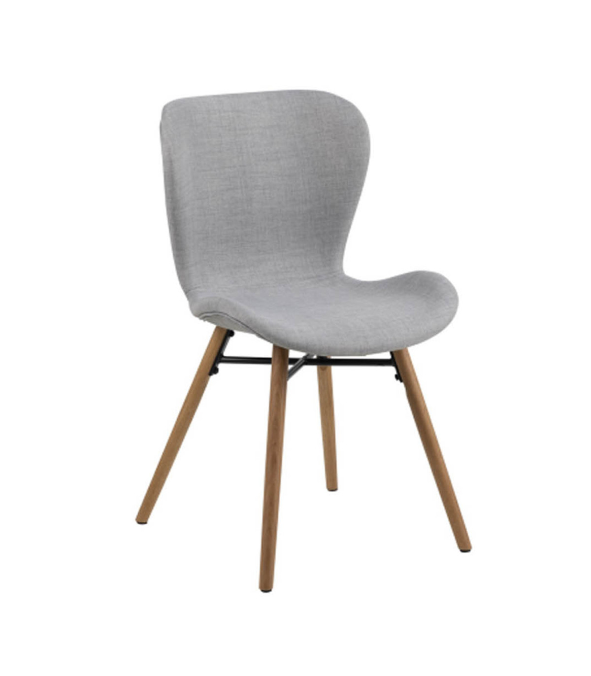 Tool BATILDA 47x56xH82,5cm. Toolil on orgaanilise kujuga iste koos mugava seljatoega. Tool on kaetud pehme kangaga, mis sobib ideaalselt õlitatud tammejalgadega. Elemendid koos annavad toolile elegantse välimuse. Iste ja seljatugi: kangas, värvus: helehall, jalad: tamm, viimistlus: õlitatud. Must metallist tugirist. Kaalupiirang: 110kg.