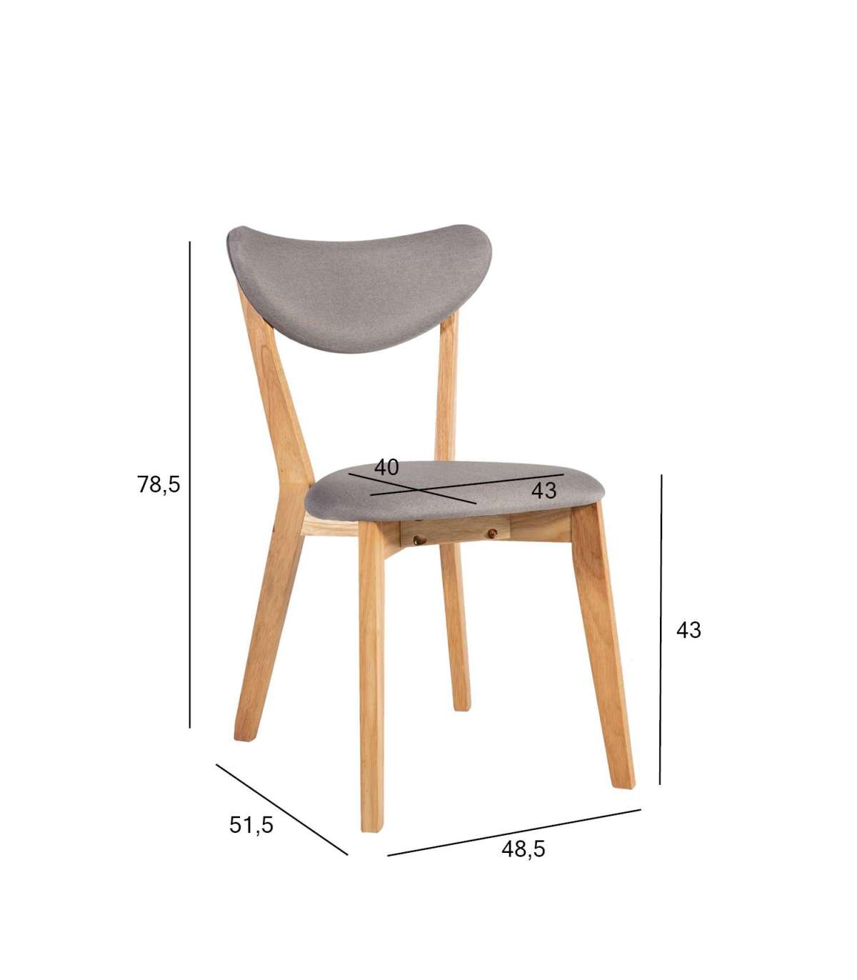 Tool JONNA hall. Tooli kergelt polsterdatud iste on kaetud halli polüesterkangaga. Tooli jalad ja raam on valmistatud kummipuust ja viimistletud tamme toonis lakiga. Tooli üldmõõdud on 48,5x51,5x78,5cm. Istme kõrgus 45,5cm. Kaalupiirang 100kg.