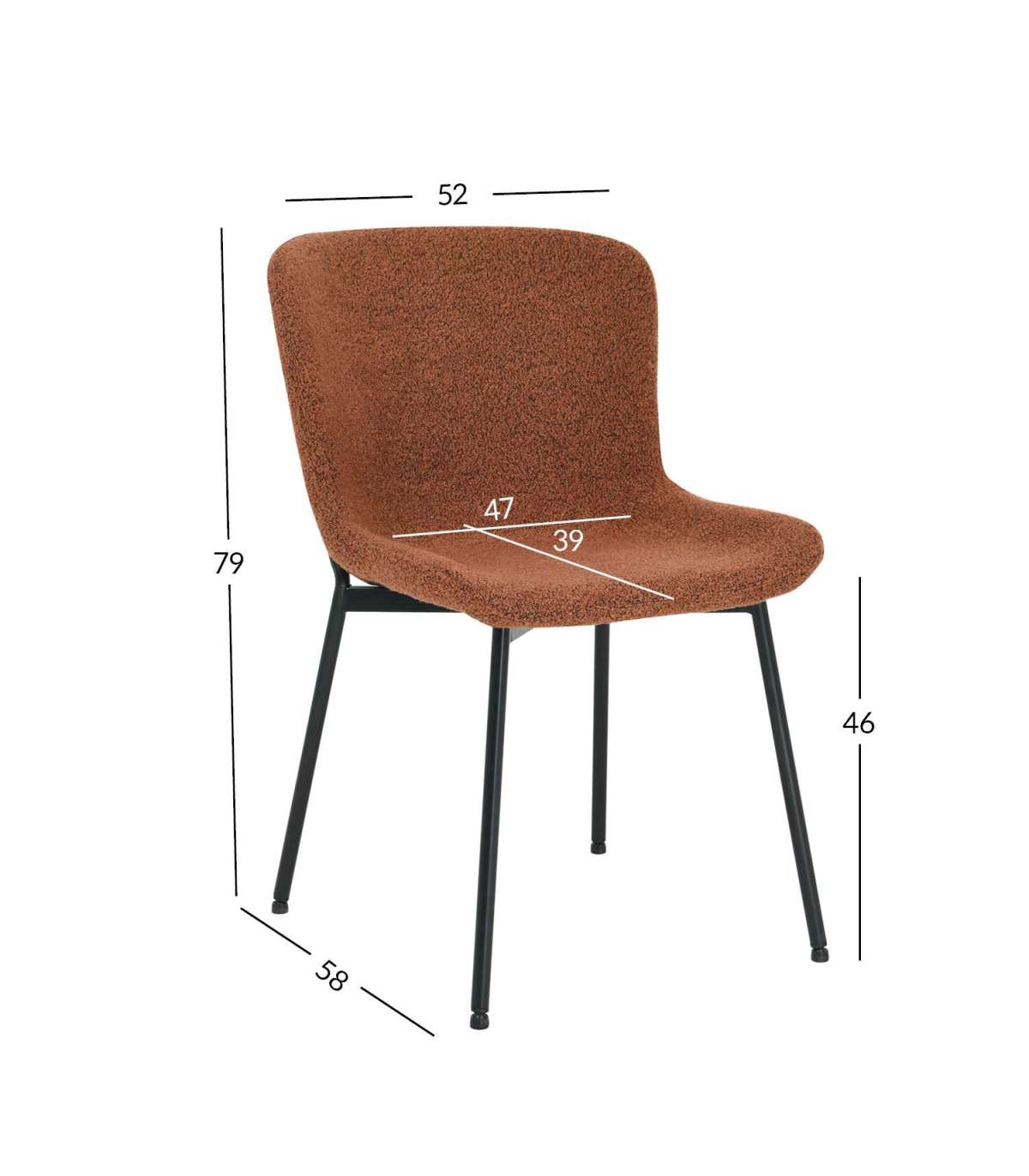 Tooli üldmõõdud on 52x58xH79cm.