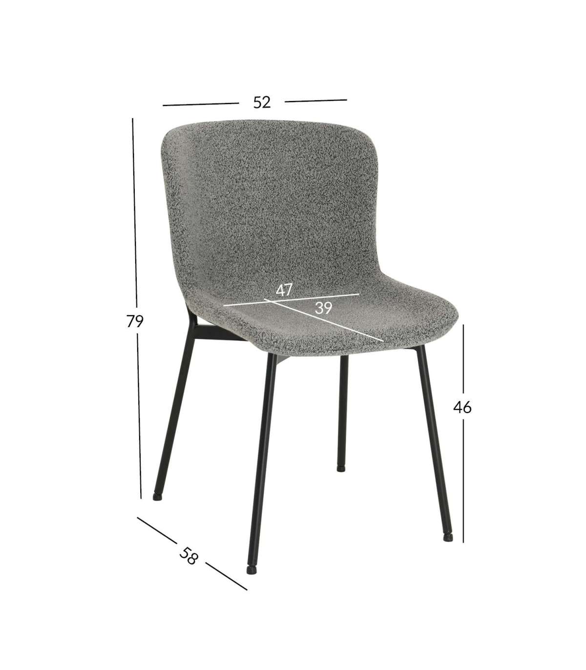 Tooli üldmõõdud on 52x58xH79cm.