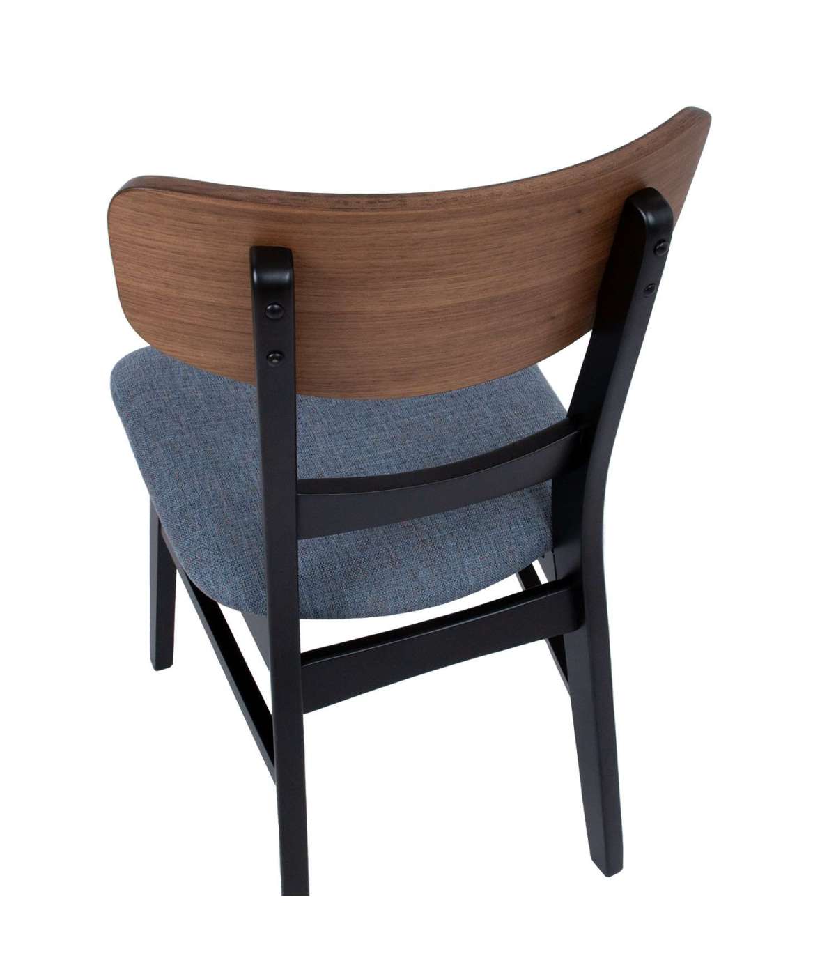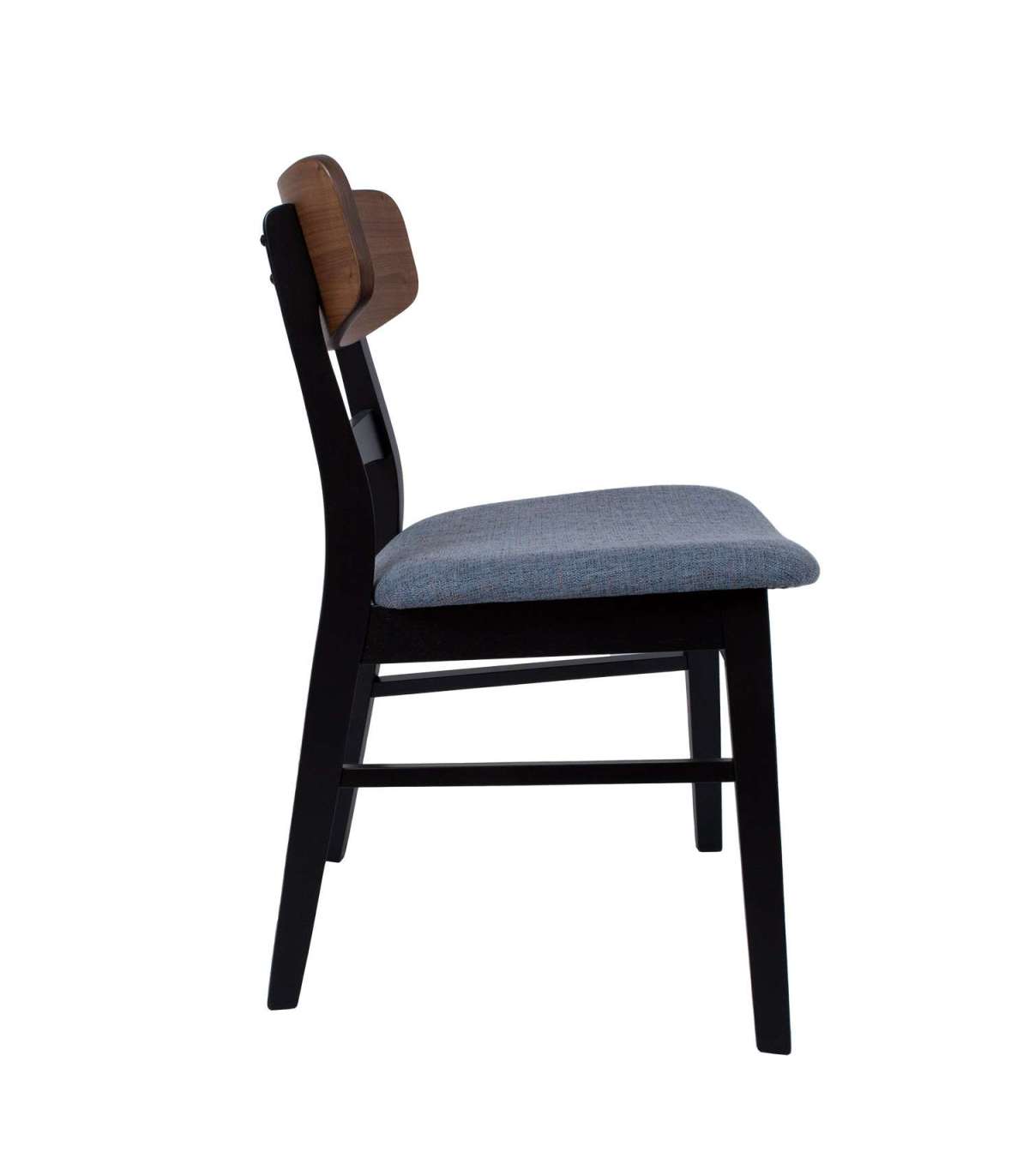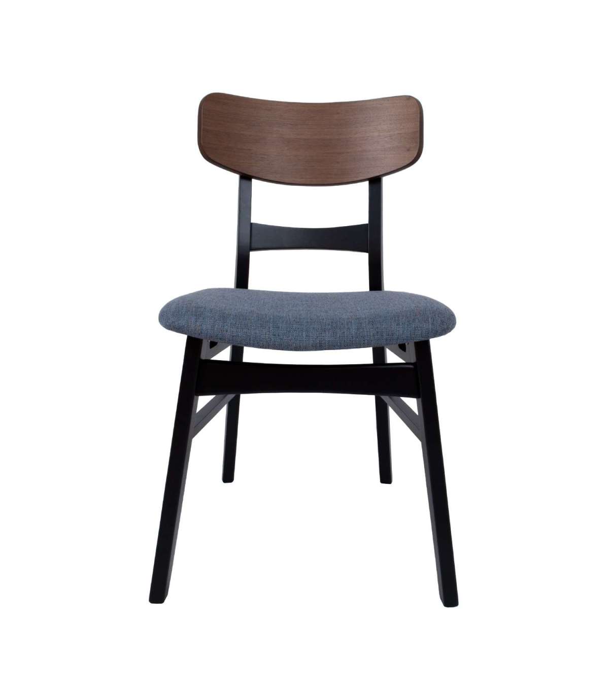 Tool MIA 47x52xH78cm, hallikassinine. Tooli iste on kergelt polsterdatud ja kaetud hallikassinise polüesterkangaga. Painutatud vineerist seljatugi on kaetud naturaalse pähklispooniga. Tooli jalad ja raam on valmistatud kummipuust ja värvitud mustaks. Kaalupiirang 120kg.