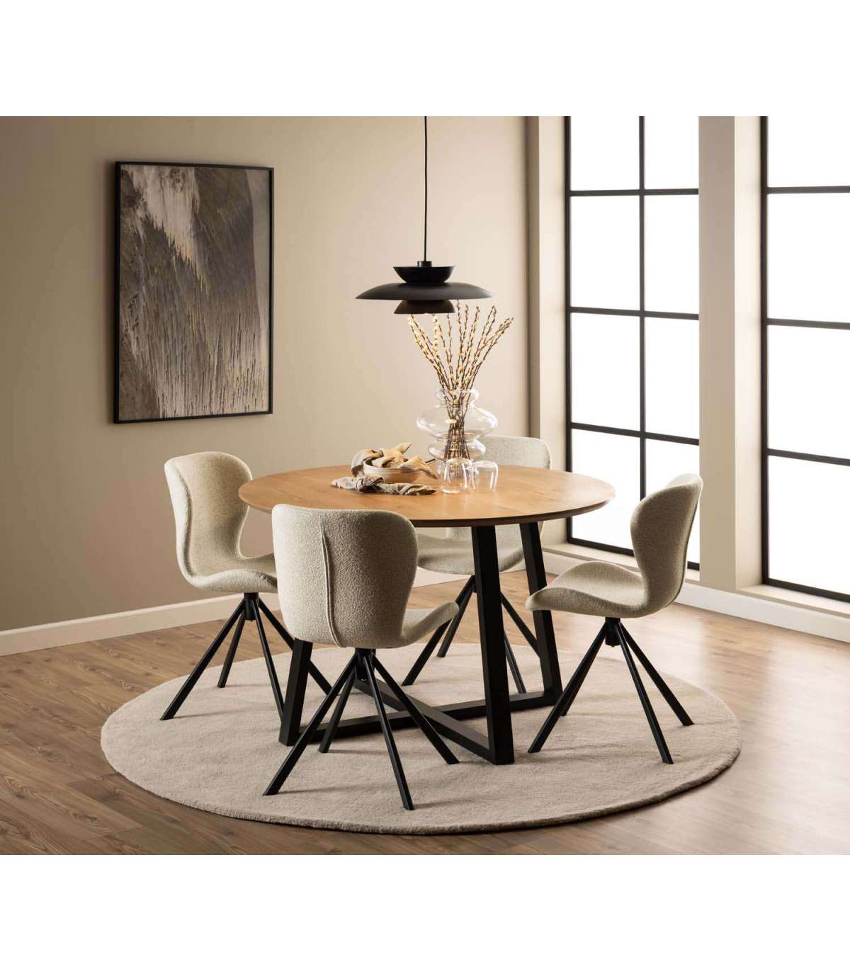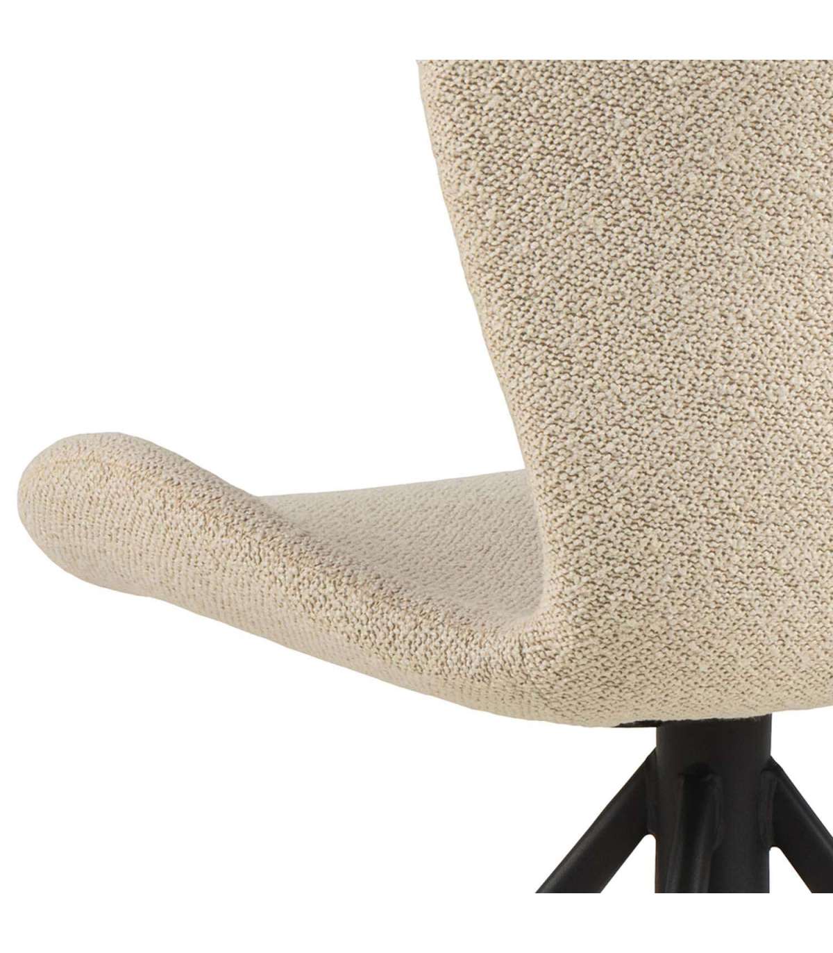 Tooli puhul on tasakaalus nii stiil, mugavus kui ka praktilisus. Pehme bukleekangaga polsterdatud iste on mugav. Seda kaunistavad dekoratiivsed siksak õmblused. Toolil on mustast terasest pöörlev alus. Mõõdud on 46,5x53xH81cm. HOOLDUS: Hooldus piirdub tolmuimemise ja plekieemaldusega. Plekkide eemaldamisel tuleb olla ettevaatlik. Katsetage plekieemaldajaid esmalt vähem nähtaval alal. Ärge kunagi kasutage lahusteid. Ärge asetage mööblit otsese päikesevalguse kätte. Alus: Kasutage igapäevaseks puhastamiseks seebiveest kuivaks väänatud lappi. Rooste vältimiseks pühkige pind kuivaks. Ärge hõõruge pinda kõvade esemetega.