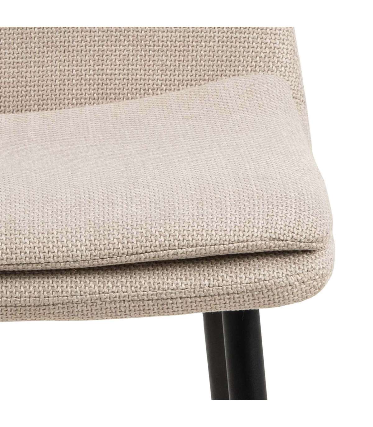 Voolujoonelise siluetiga tool on elegantne ja mitmekülgne. Tool on kaetud kahetoonilise beeži kangaga. Moodsat tooli toetavad peened mustad metallist jalad. Mõõdud on 46x55xH85,5cm. HOOLDUS: Hooldus piirdub tolmuimemise ja plekieemaldusega. Plekkide eemaldamisel tuleb olla ettevaatlik. Katsetage plekieemaldajaid esmalt vähem nähtaval alal. Ärge kunagi kasutage lahusteid. Ärge asetage mööblit otsese päikesevalguse kätte. Alus: Kasutage igapäevaseks puhastamiseks seebiveest kuivaks väänatud lappi. Rooste vältimiseks pühkige pind kuivaks. Ärge hõõruge pinda kõvade esemetega.
