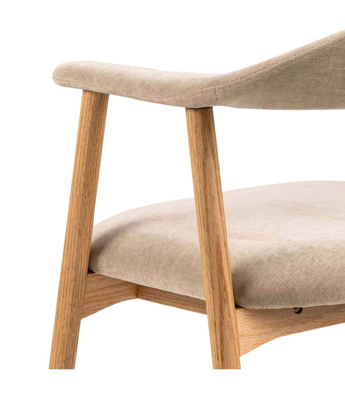 Tool on kaasaegse põhjamaise hõnguga. Seda iseloomustab kerge vorm ja puhas esteetika. Toolil on käetoed ja avatud seljatugi. Õliga töödeldud raam toob ruumi soojust ja loob õdusa õhkkonna. Elegantsust lisab beeži värvi šenillilaadse kangaga kaetud pehme iste. Kangas: 100% polüester, Martindale > 40 000. Jalad: lakitud tamm. Toote mõõdud on 56x54xH75,5cm.