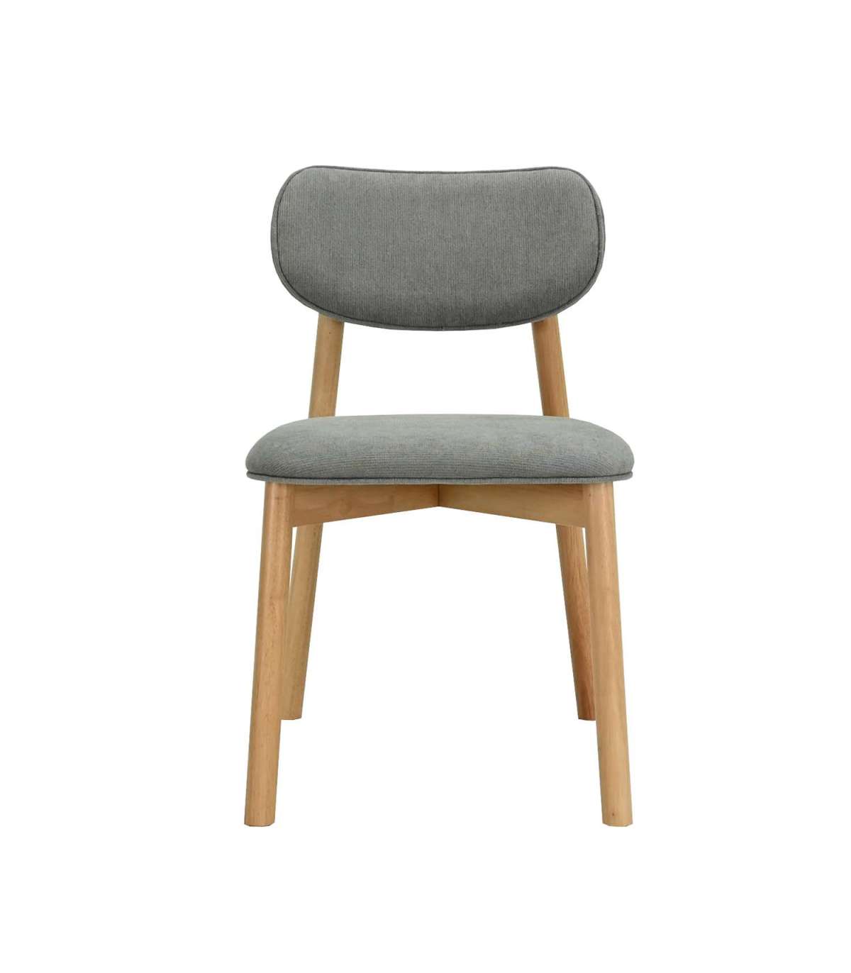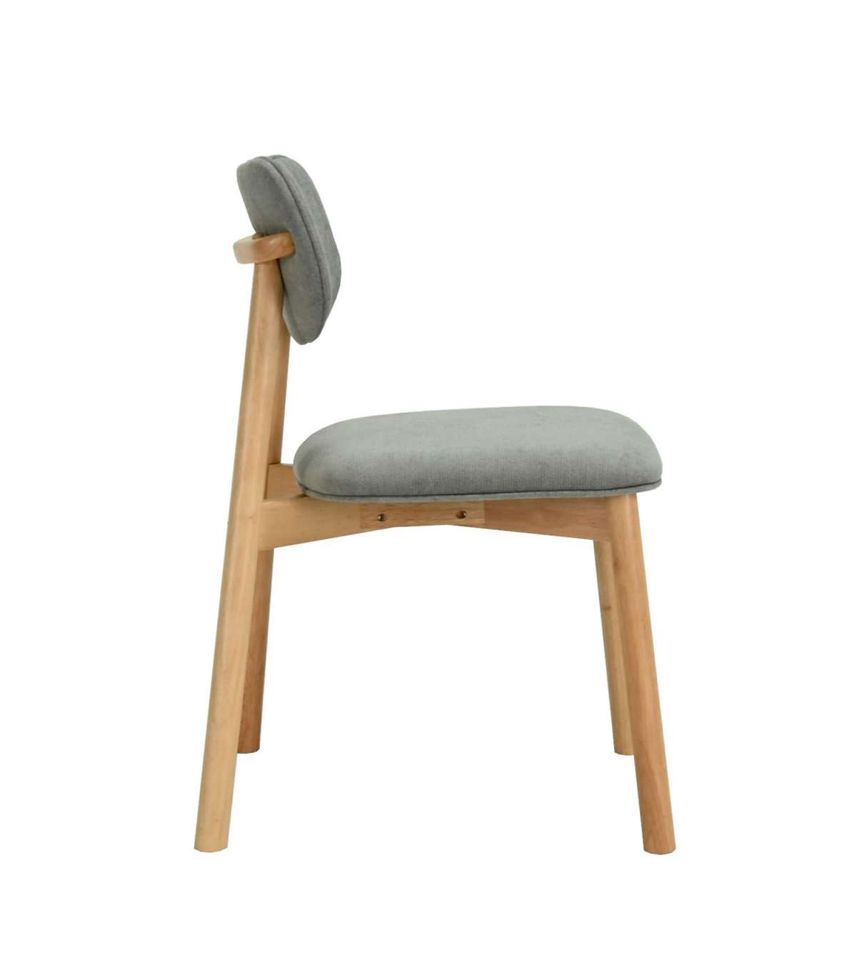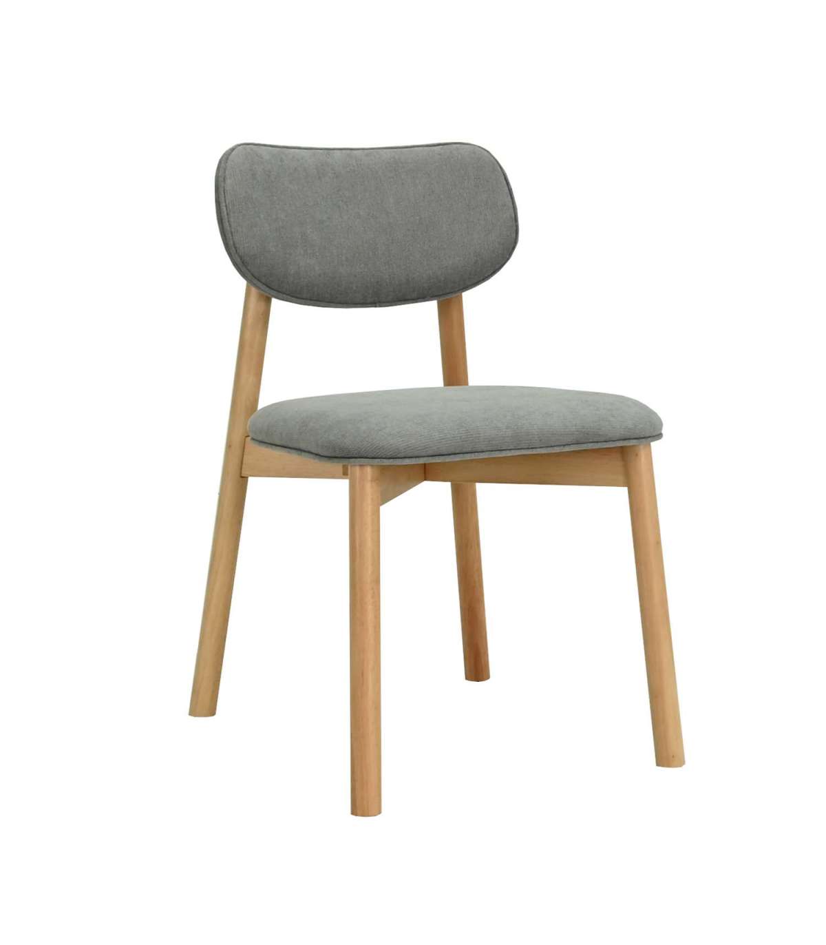 Tooli iste ja seljatugi on kergel polsterdatud ja kaetud halli polüesterkangaga.