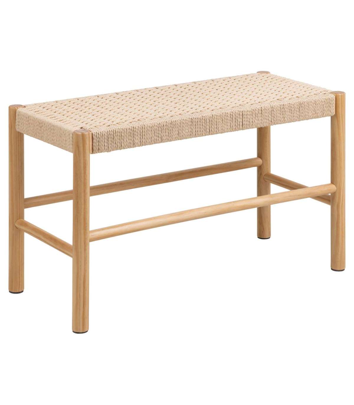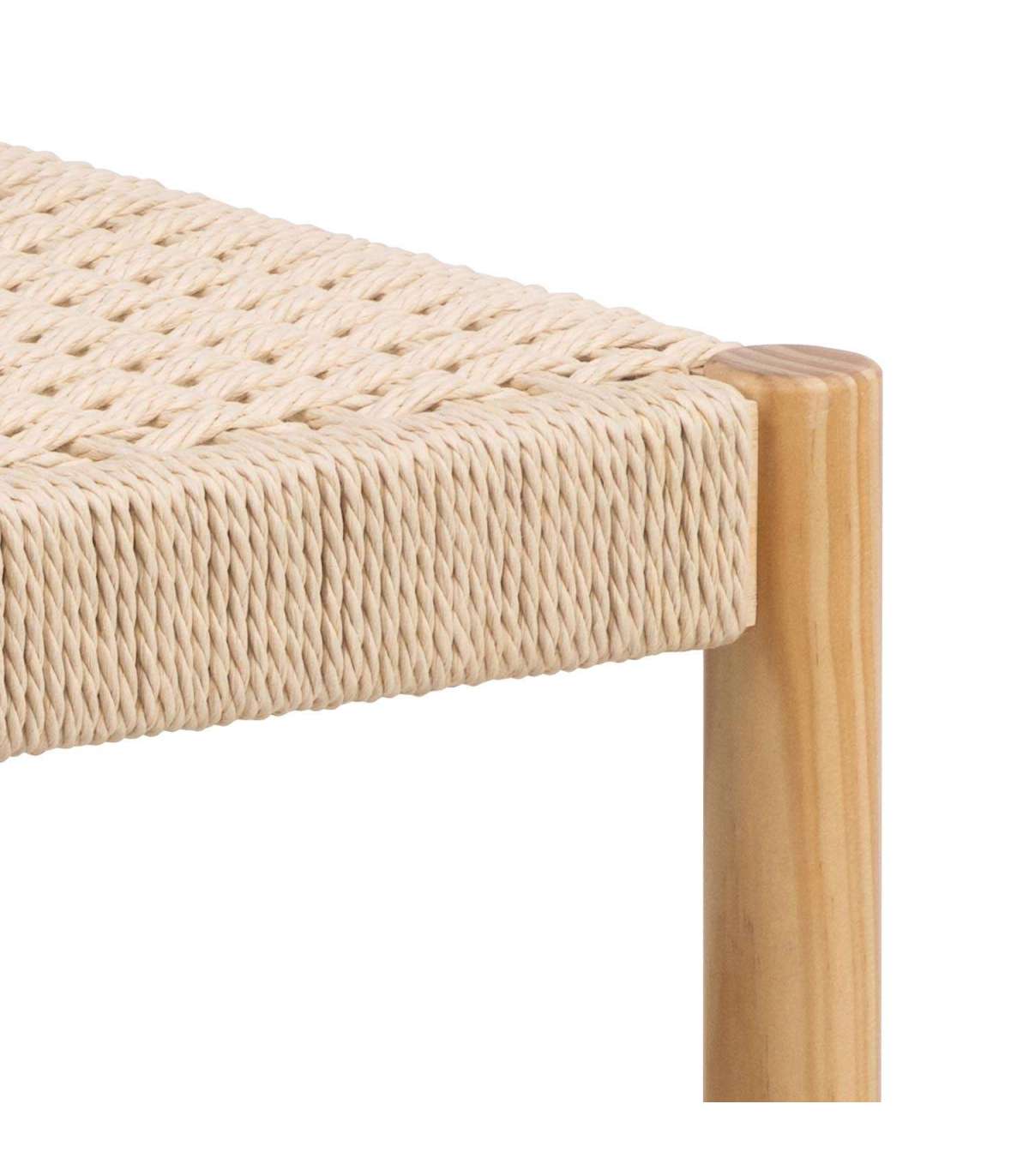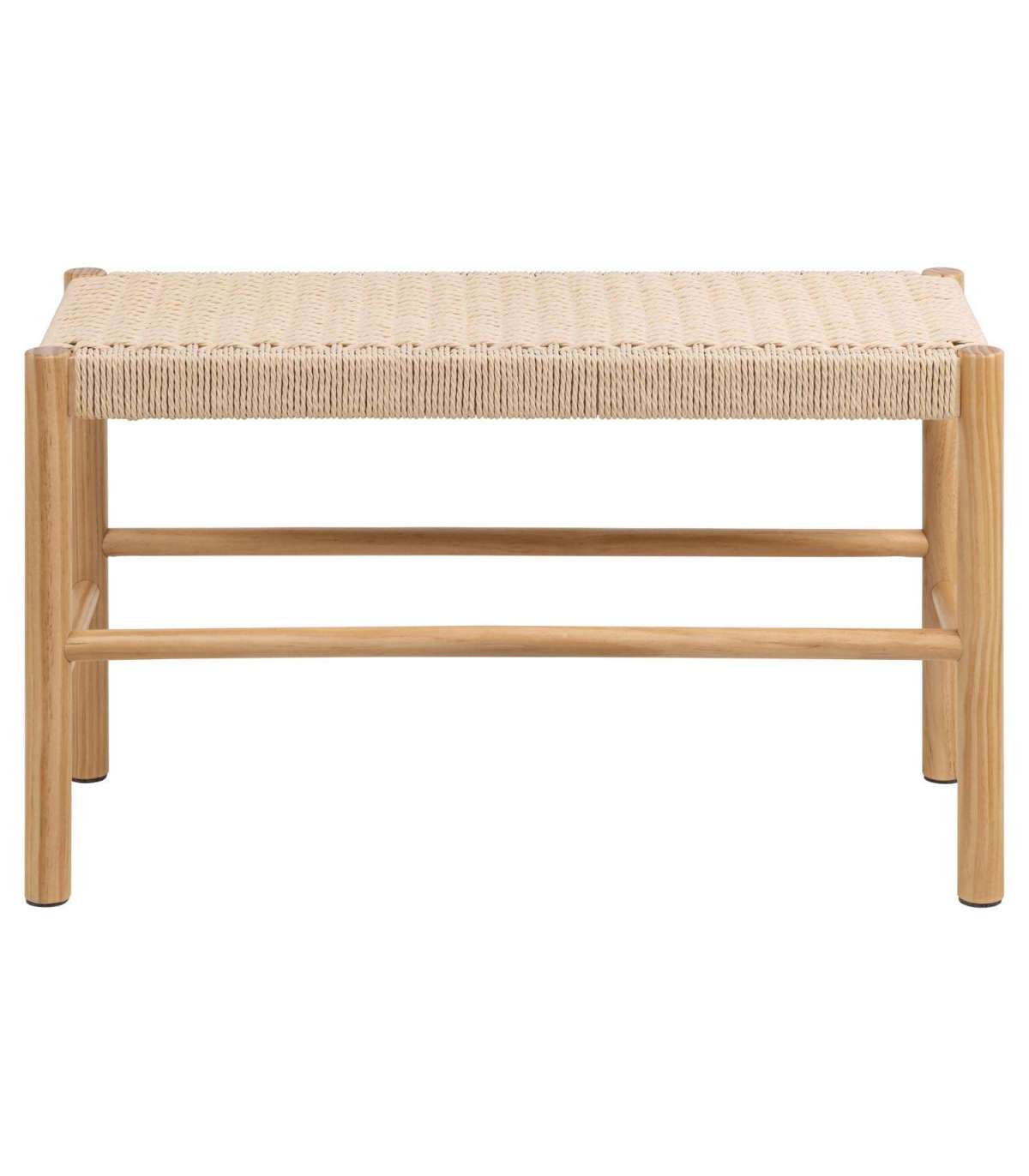 Klassikaline skandinaavia esteetika. Pingis väljendub lihtsate vormide ja looduslike materjalide ilu. Iste on põimitud nööriga, luues keeruka mustri. Ümar raam on valmistatud lakitud männist. Mitmekülgne oma kasutuses, sobib pink hästi dekoratiivesemeks või istumiskohaks. Mõõdud 80x35xH45cm.