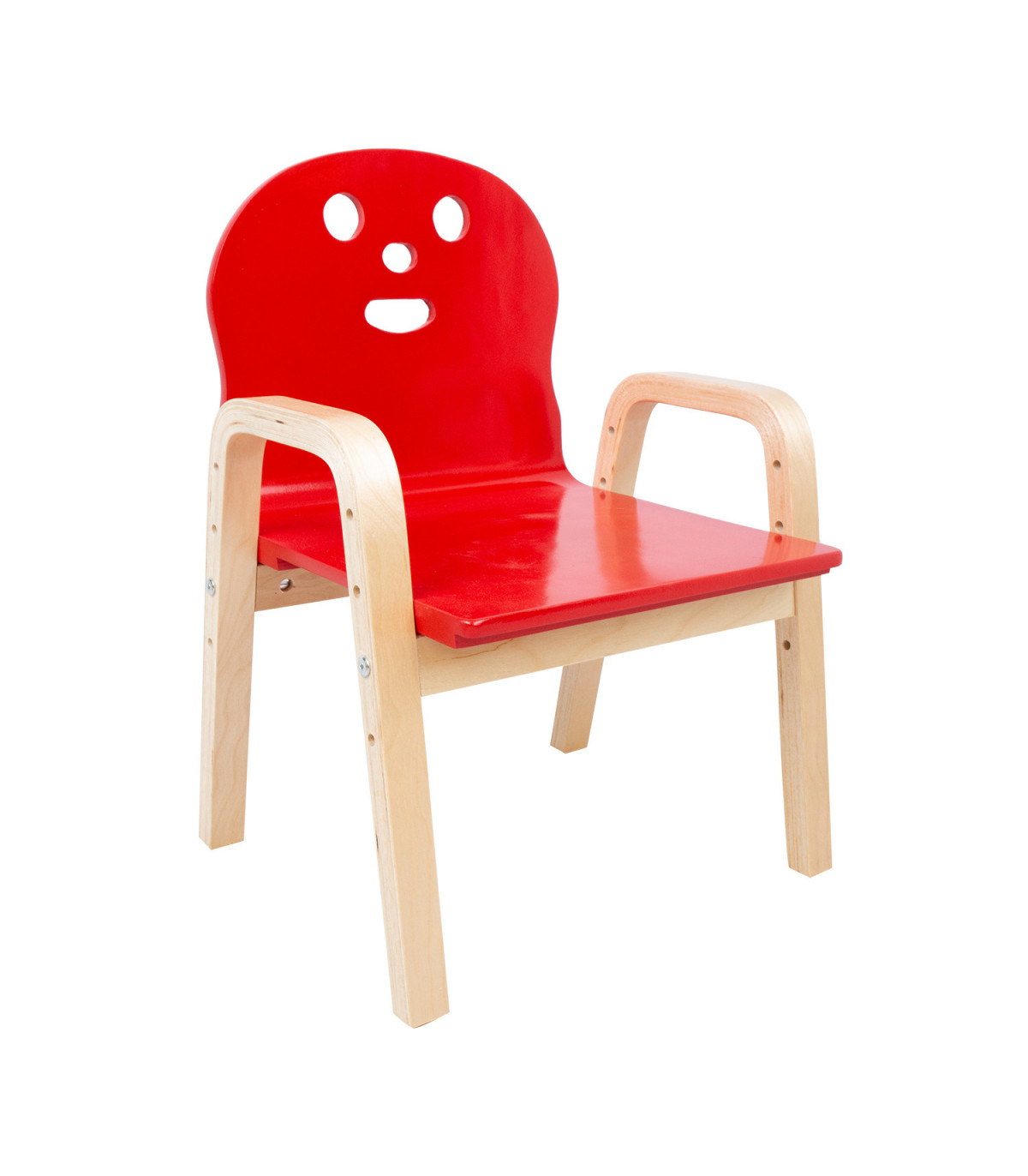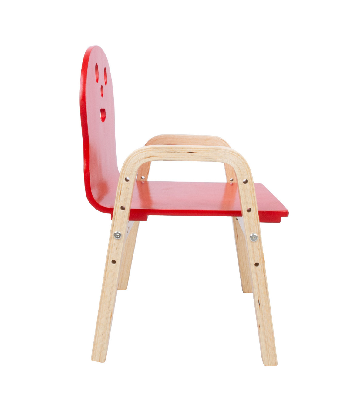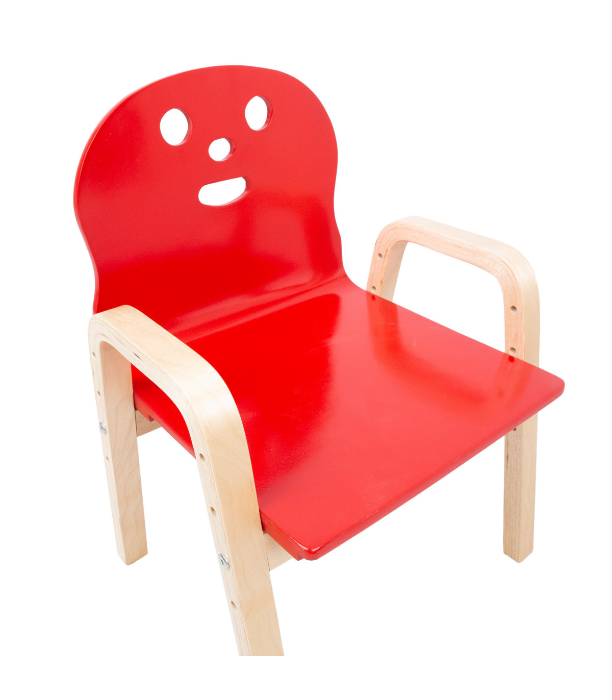 Lastetool HAPPY, punane. Tool HAPPY kasvab koos teie lapsega! Istme kõrgust on võimalik tõsta neli korda vastavalt lapse kasvule - 21/25,5/30/34,5cm. Tooli üldmõõdud on 39x36xH46,5/51/55,5/60cm. Istme laius 33cm, istme sügavus 31cm, seljatoe kõrgus 27cm, käetoe kõrgus maast 36cm. Materjal: painutatud paplivineer kasespooniga. Iste on värvitud punaseks, jalad ja raam on viimistletud naturaalse lakiga. Kaalupiirang 40kg.
