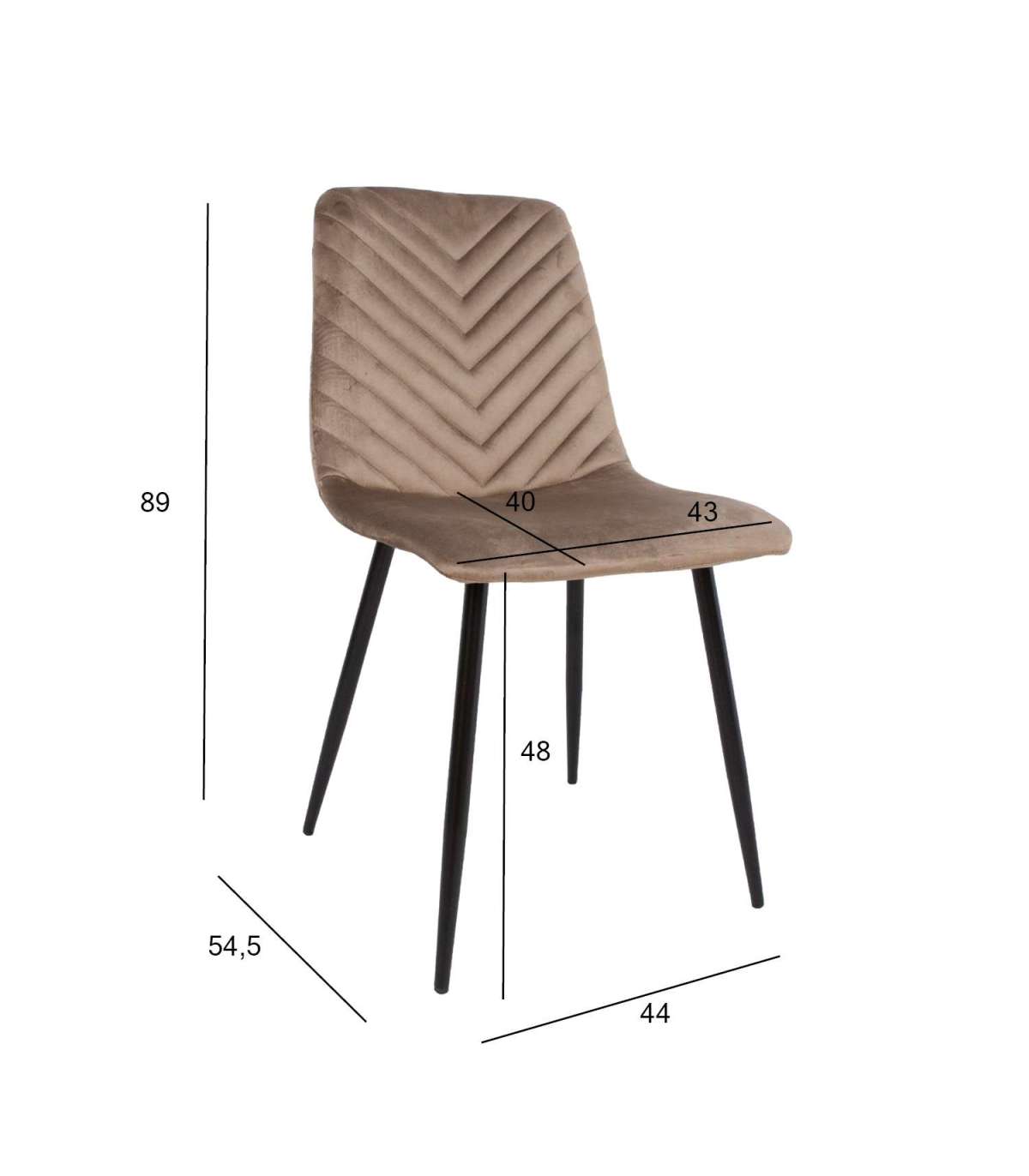 Tooli üldmõõdud on 45x53xH89cm. Istme laius 44cm, istme sügavus 40cm, istme kõrgus 48cm, Seljatoe kõrgus 43cm. Kaalupiirang 120kg.