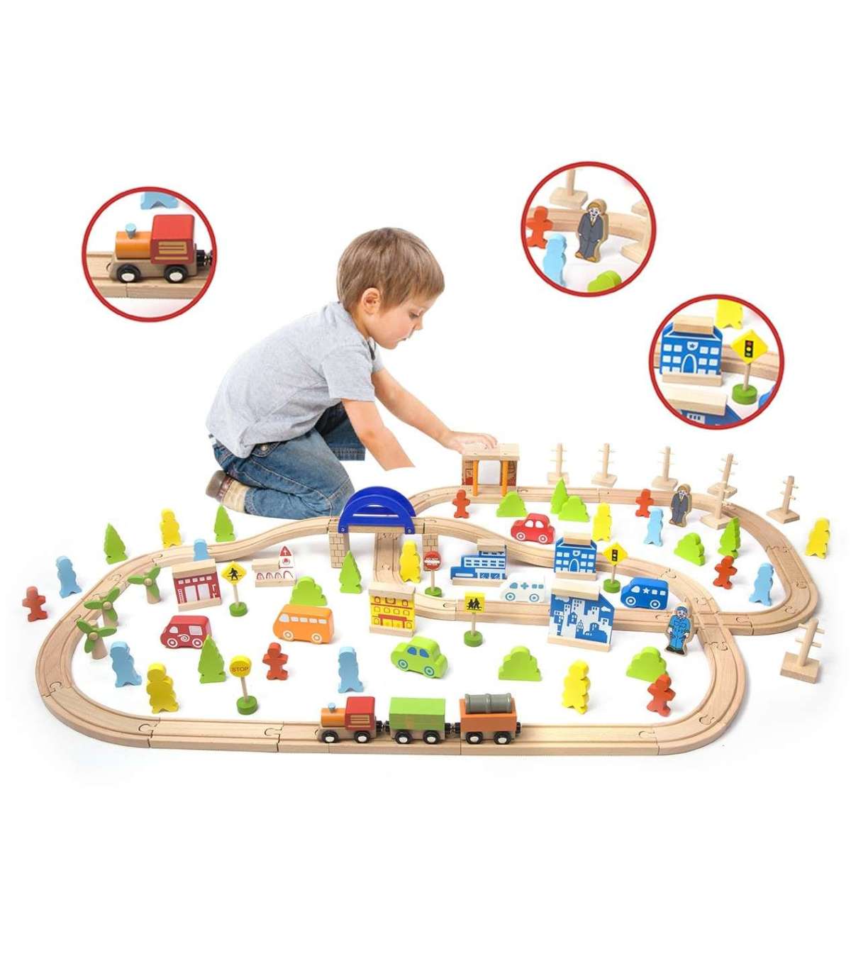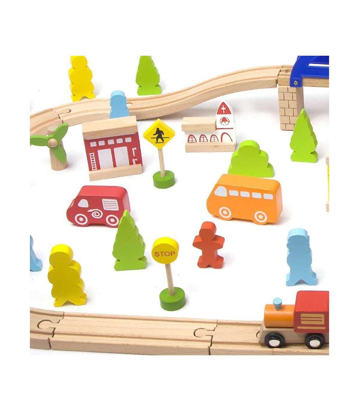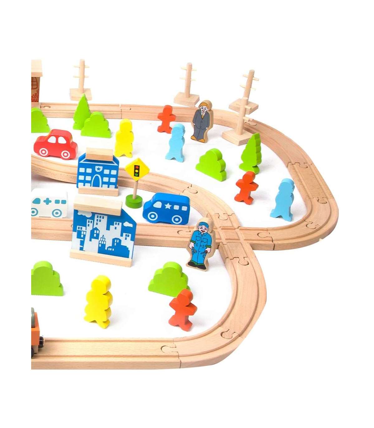 Suurepärane komplekt firmalt Classic World. Puidust rongikomplekt, mille saab kokku panna 110 osaga, on suurepärane kingitus iga lapse jaoks, kes armastab mängida sõidukitega ja makettidega.