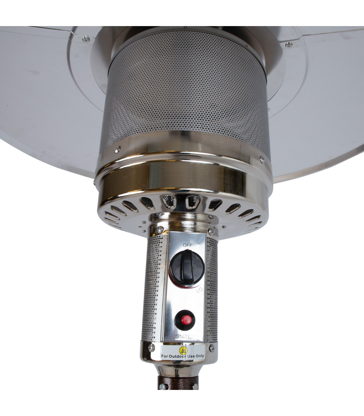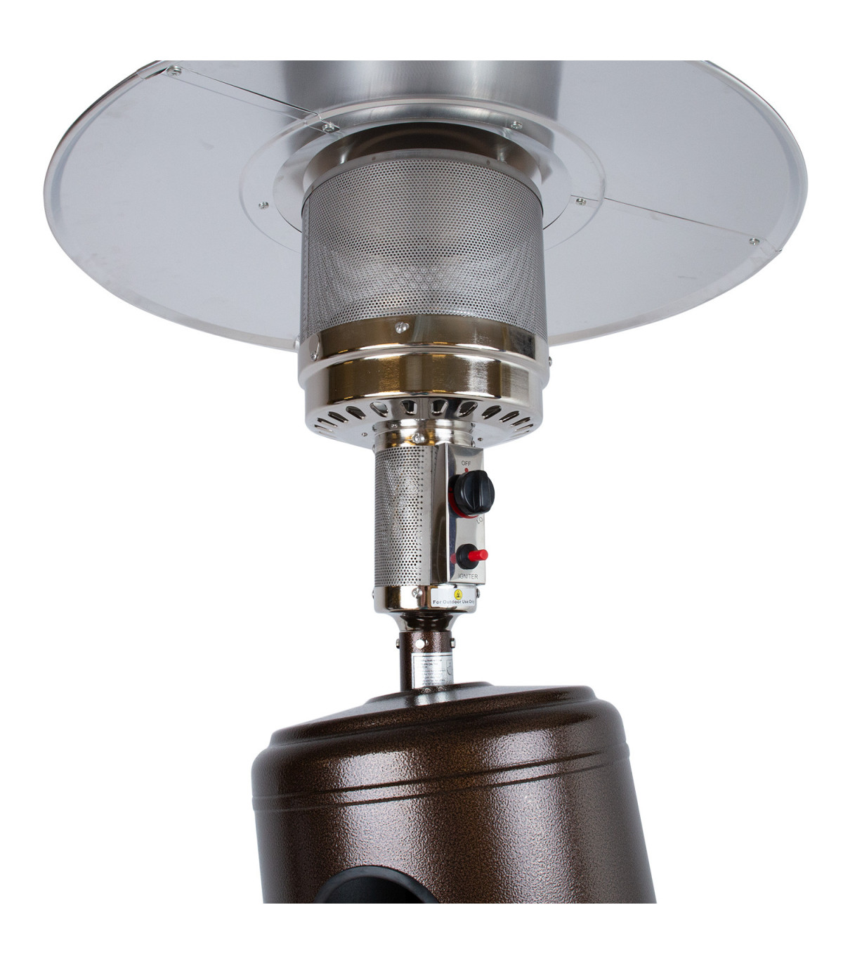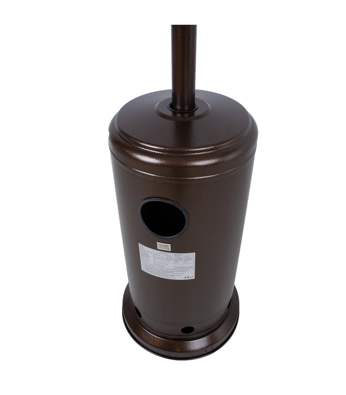 Gaasisoojendi ROCKET H221cm. Dekoratiivne gaasisisoojendi annab sooja, loob hubase meeleolu ja võimaldab ka jahedatel päevadel õues olemist pikemalt nautida. Gaasisoojendi sobib kasutamiseks koduterrassil, restoranis või kohvikus. Terrassisoojendit on lihtne kasutada, sellel on elektriline (patareiga) süütamine ja mugav leegi reguleerimine. Korpuse ühel küljel on rattad, mis võimaldavad soojendit vajadusel mugavalt ja turvaliselt teisaldada. Ümberkukkumisandur kustutab leegi automaatselt, kui kaldenurk ületab 45°. Automaatne väljalülitussüsteem peatab gaasivarustuse koheselt, kui tuvastatakse leegi sumbumine või gaasileke. Gaasisoojendi korpus on valmistatud terasest ja viimistletud pruuni pulbervärviga. Korpuse mõõdud on D46xH75cm, reflektori diameeter 82cm. Maksimaalne küttevõimsus 13kW. Soojendatav ala 10-16m². Gaasikulu: 945g/h. Sobiv gaas: propaan, butaan või LPG. Gaasiregulaator ei kuulu komplekti, see on saadaval eraldi koodiga TA329142.