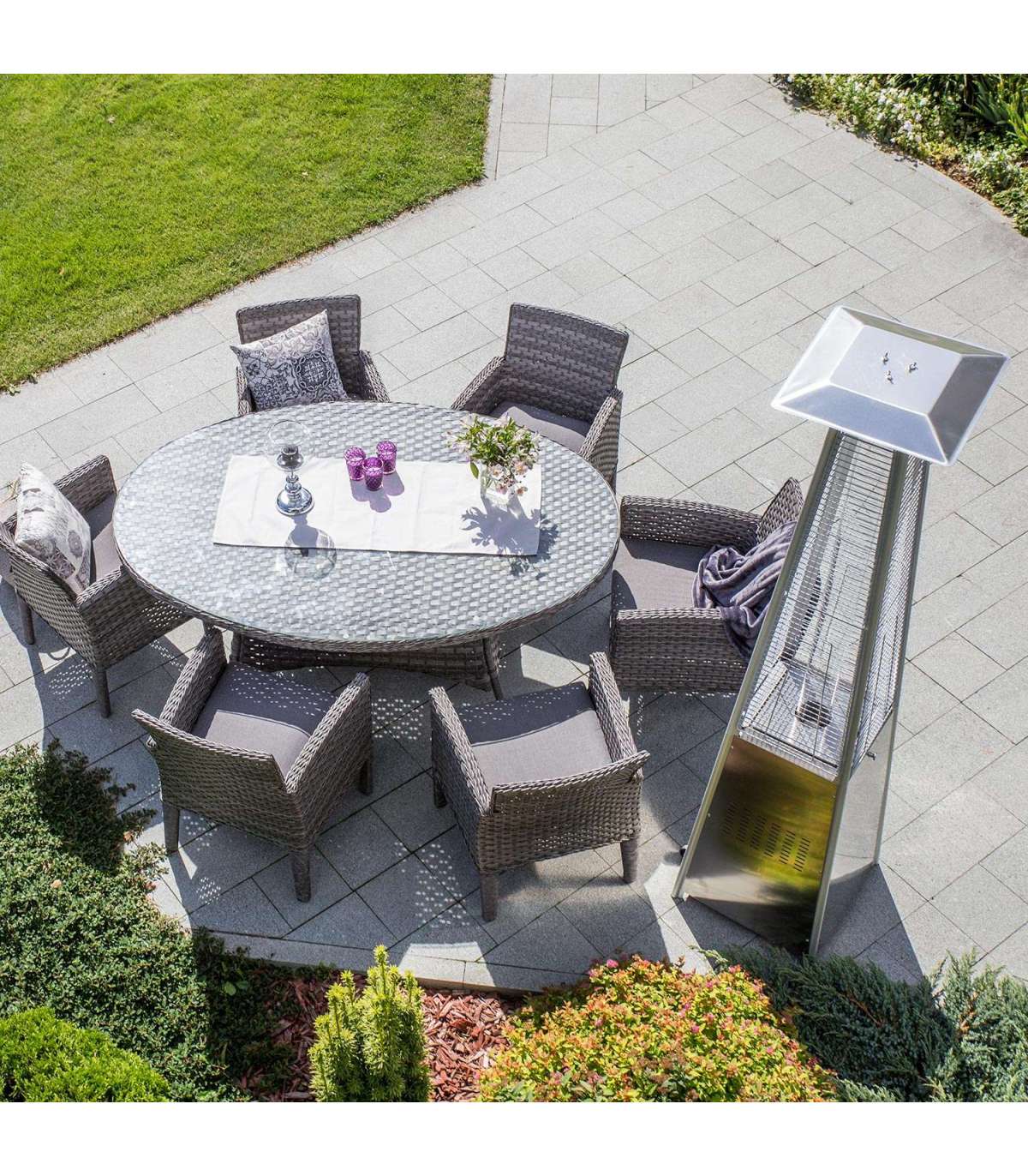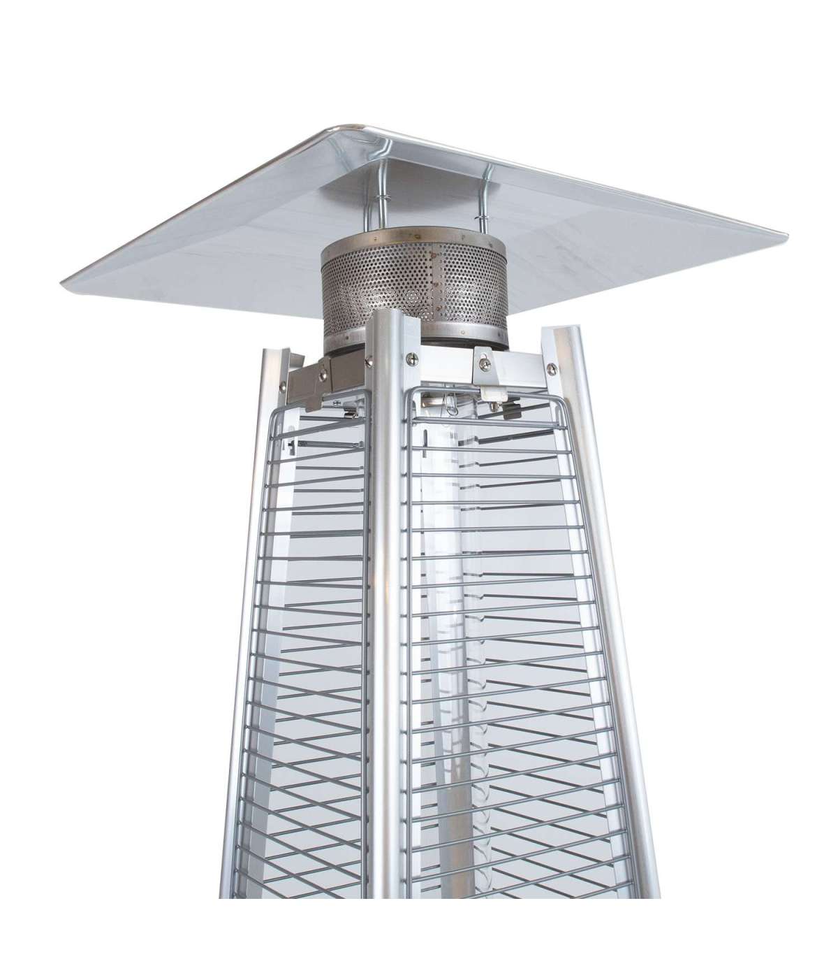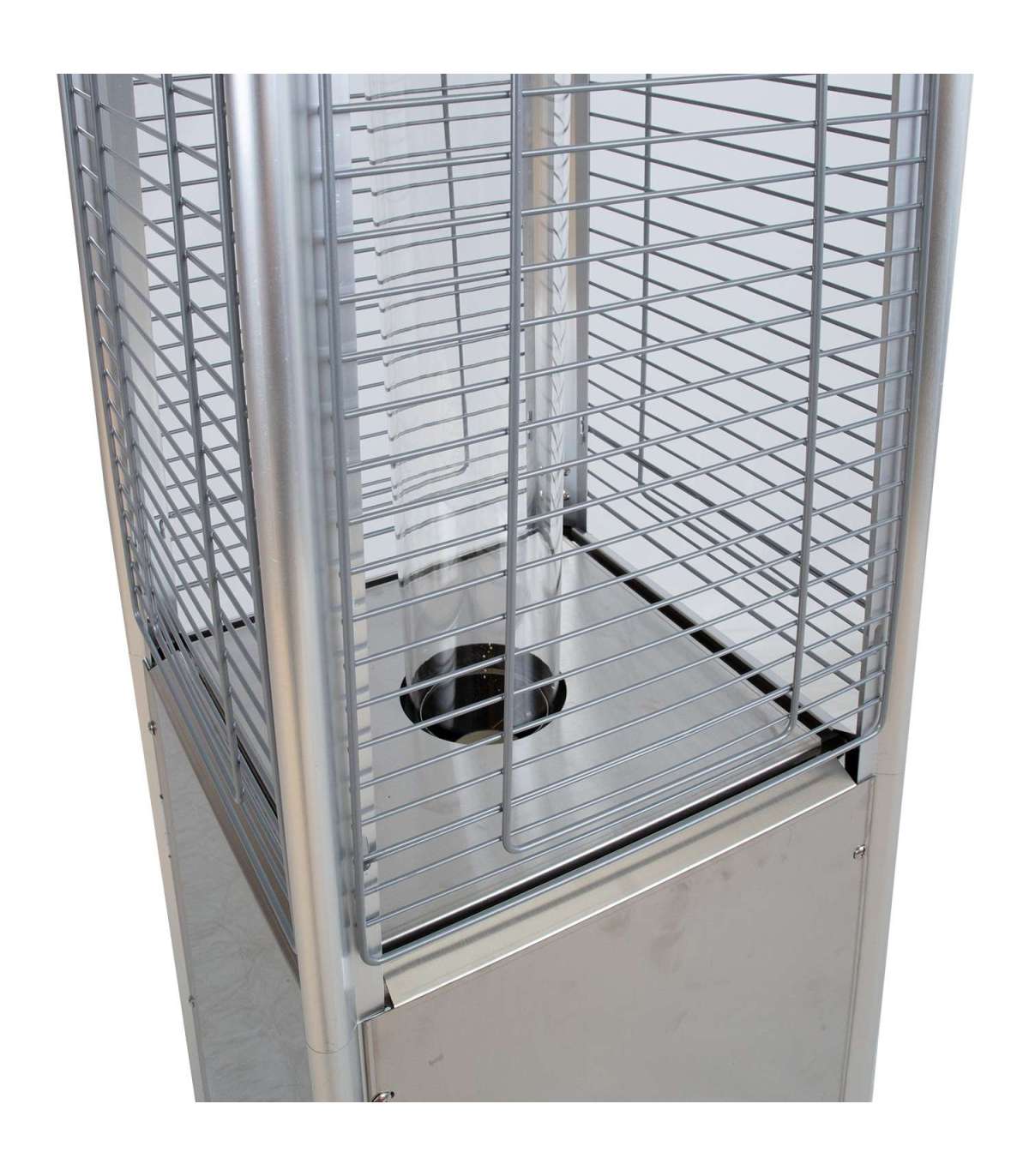 Gaasisoojendi TOWER 73x73xH227cm. Dekoratiivne gaasisisoojendi annab sooja ja valgust, loob hubase meeleolu ja võimaldab ka jahedatel päevadel õues olemist pikemalt nautida. Klaastorus põlev tuleleek on ohutu. Gaasisoojendi sobib kasutamiseks koduterrassil, restoranis või kohvikus. Terrassisoojendit on lihtne kasutada, sellel on elektriline (patareiga) süütamine ja mugav leegi reguleerimine. Korpuse ühel küljel on rattad, mis võimaldavad soojendit vajadusel mugavalt ja turvaliselt teisaldada. Ümberkukkumisandur kustutab leegi automaatselt, kui kaldenurk ületab 45°. Automaatne väljalülitussüsteem peatab gaasivarustuse koheselt, kui tuvastatakse leegi sumbumine või gaasileke. Gaasisoojendi korpus on valmistatud roostevabast terasest. Klaastoru mõõdud D10xH125cm, reflektori mõõdud D65xH5,5cm. Maksimaalne küttevõimsus 13kW. Soojendatav ala 10-16m². Gaasikulu: 945g/h. Sobiv gaas: propaan, butaan või LPG. Gaasiregulaator ei kuulu komplekti, see on saadaval eraldi koodiga TA329142. Varuosana saadaval klaastoru D10xH125cm, kood 385521.