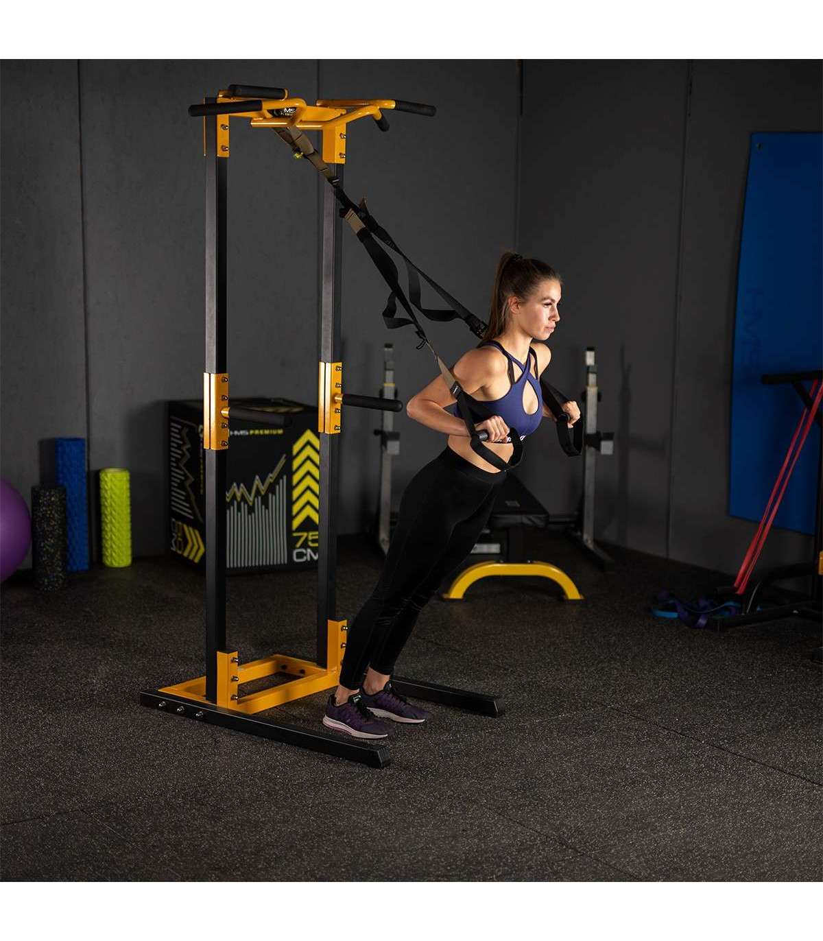 TX09 HMS mudel on valmistatud äärmiselt vastupidavatest materjalidest, mis tagab kasutajate ohutuse ja mugavuse. Kogu komplekt kaalub vähem kui kilogrammi ja mahub komplektiga kaasasolevasse väikse kotti. Kasutajasõbralik kinnitussüsteem võimaldab valida treeningkoha, mis annab vabadustunde ja suurendab motivatsiooni treenida.
