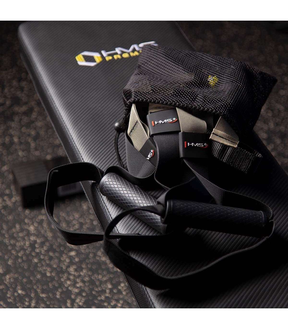 TX09 HMS on kummiribade komplekt, mis võimaldab teha sadu harjutusi, kasutades oma kehakaalu. Komplekti kuuluvad treeningkummid käepidemete ja metallkarabiiniga, uksehoidja ning võrk. Käepidemed on kummiga kaetud, et treeningu ajal käed ei libiseks. TX09 HMS rihmad võimaldavad pikkust reguleerida sõltuvalt tehtavast harjutusest või treenija kehatüübist.