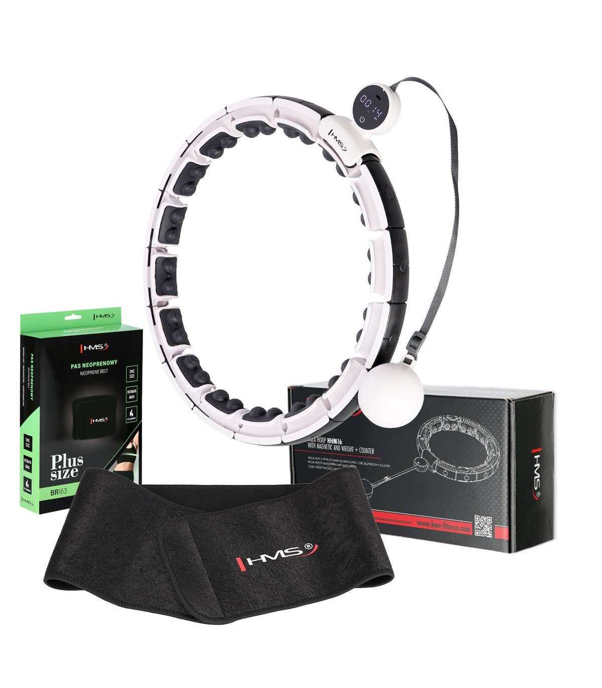 SET HULA HOOP MAGNETIC WHITE HHM16 WITH WEIGHT + COUNTER HMS + WAIST SUPPORT BR163 BLACK PLUZ SIZEThe HHM16 HMS is a magnetic adjustable hula-hoop with a smart USB-charged digital display and gravity fitness ball. Allows simultaneous workout and 360-degree magnetic waist massage. Allows precise measurement of parameters during the workout. As many as 32 applied magnets will allow you to take full advantage of the possibilities of the magnetic field, which positively affects metabolism and accelerates fat burning. In a set with the BR163 slimming belt, you can achieve your dream figure even faster.Magnetic 360° massageThe HHM16 magnetic hula-hoop is an excellent solution to help you fight unnecessary kilos, located in the abdominal area, hips and buttocks. The magnets, which are attached to the inner rim of the wheel, are negatively polarised. This arrangement has a stimulating effect on the metabolism. The magnets are perfectly matched in terms of power.To further enhance the action of the HHM16, there are as many as two magnets in each element of the wheel, doubling the power of the massage!The operation of the HHM16 is very simple and intuitive. It is a closed loop that has a rail with an attached gravity ball (weight). As you make circular motions with your hips, centrifugal force begins to act, which moves the gravity ball around the circle, putting the abdominal muscles and torso under tension.USB-charged digital displayThe HHM16 is equipped with an improved counter. Thanks to the use of digital technology, it is possible to accurately measure workout parameters such as the number of calories burned, running time or number of repetitions. For the sake of the environment, we have moved away from alkaline battery power in the HHM16 and started to use a rechargeable battery charged via USB type C.360° workout and massage in oneThrough the 360-degree movement performed, the springs in the heads located around the perimeter of the loop perfectly cushion the strain and adapt to the body, resulting in an additional massage effect, providing the body with a pleasant sensation. The three-dimensional massage technique quickly stimulates the muscles. The built-in specially designed tabs have shock absorption for a comfortable workout.Simple and quick perimeter adjustmentQuickly and conveniently reduce or increase the size of the wheel, simply unplug or plug in as many elements as you need. The HHM16 has a total of 16 elements. The size can be adjusted from 10 to 16 elements, i.e. waist circumference from 59 cm to 113 cm (loop diameter: 28 cm to 45 cm).The assembly is done with clips. Simply push in the clip to pull out or insert the additional element. Then insert the gravity ball rail into the loop, adjust the length of the strap and you are done. It is important not to pull out the element that houses the sensor responsible for providing data.Training intensity adjustmentAs an added bonus, the length range of the gravity ball strap can be varied to adjust the intensity and difficulty level of the workout - the longer the strap, the more strength you need to put into the workout. Adjustable from 20 cm to 38 cm. The longer the strap, the greater the centrifugal force during the exercise, i.e. more weight and a higher level of difficulty to perform the rotations.The fastest results included! The fastest training effects will be obtained by combining training on the HHM16 hula hoop with the simultaneous use of the HMS BR163 belt. Such training will allow you to model your silhouette even faster. Using the belt increases sweating during training, thanks to which we get rid not only of water from the body, but also of toxins, salts and some metals.BR163 slimming beltThanks to the elastic neoprene and Velcro fastening, the belt adapts perfectly to the body, guaranteeing full comfort. It can be used by both women and men. It facilitates perspiration wicking, ensuring that the belt will fit your body perfectly at all times. The belt has vents to wick away perspiration and can be worn for hours without the risk of chafing the skin. It ensures optimal airflow and promotes microcirculation.Plus Size BeltUsing a blend of neoprene and polyester, the drawstring is fastened with a full-length Velcro fastener. This fastening allows it to be used by people with sizes from XXS all the way up to XXL. Once purchased, the belt will be able to serve us even after we have lost a lot of weight.What do you gain from training?Exercises performed with the hula-hoop and the belt will strengthen your abdominal, back and even buttock muscles. They will also help you achieve a slim waist and reduce body fat. The HHM16 is used not only for fitness training, but also for rehabilitation and correcting postural defects. Just half an hour of uninterrupted training will give you the results you want!Exercise effectsSlim waistFlatter abdomenCellulite reductionSleek armsFirm thighs and buttocksImproved blood flowImproved posture Specification:Material: PVC, ABS, PP, TPRColor: white anthraciteCircuit adjustment:10 - 16 elementsinner diameter 19 cm - 36 cmoutside diameter: 28 cm - 45 cmdiameter of a single element 4,5 cmWaist: 59cm - 113cmWeight of the load: 300g.Adjustable weighted cable:20cm - 38cmmagnets 2 in each of 16 segments Weight adjustment: yesUSB charged digital LCD displayLCD display functions: time, calories, number of repetitions, rotation speed, battery charge levelComfortable clip fasteningBall bearings, stainless steelBelt specification:Color: blackMaterial: neoprene 70%, polyester 30%Size: plus sizeFor women and menCan be used during exercise as well as for everyday useComfortable velcro fasteningPerfect fit to the body Lenght: 130 cmRemarks:Not for commercial use24 months warrantyImporter: Abisal Ltd. | Poland | 41-807 Zabrze | Pyskowicka Street 17 | e-mail: abisal@abisal.plAbisal Ltd.. declares that the products sold by the company are safe and meet the requirements contained in the Act on General Product Safet