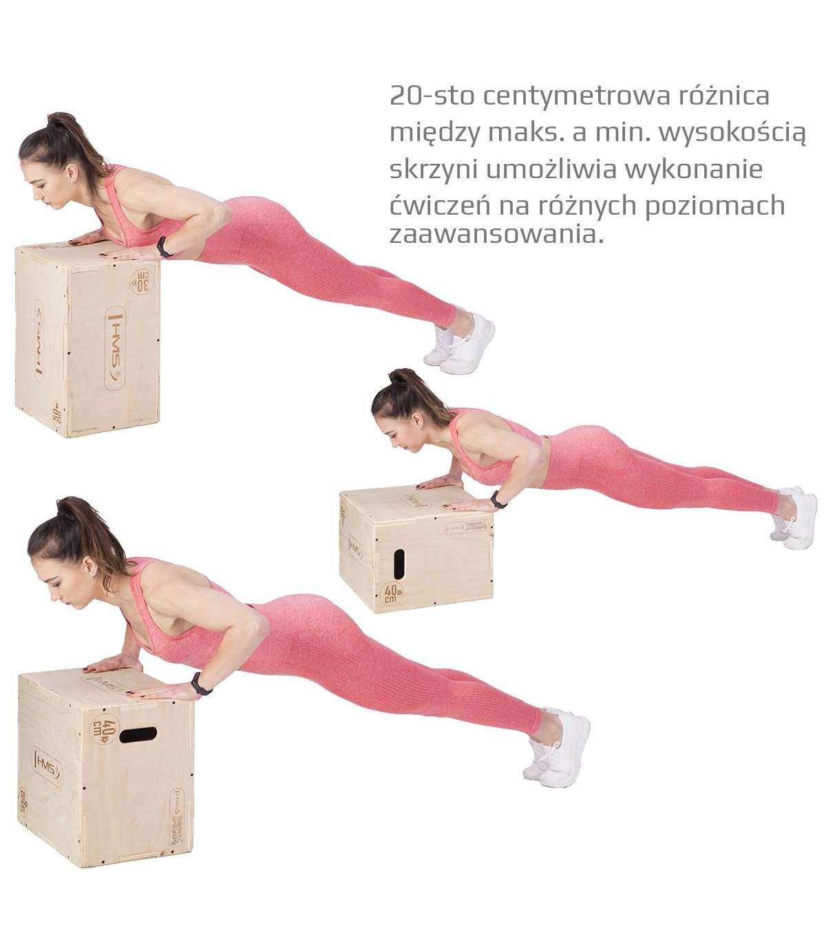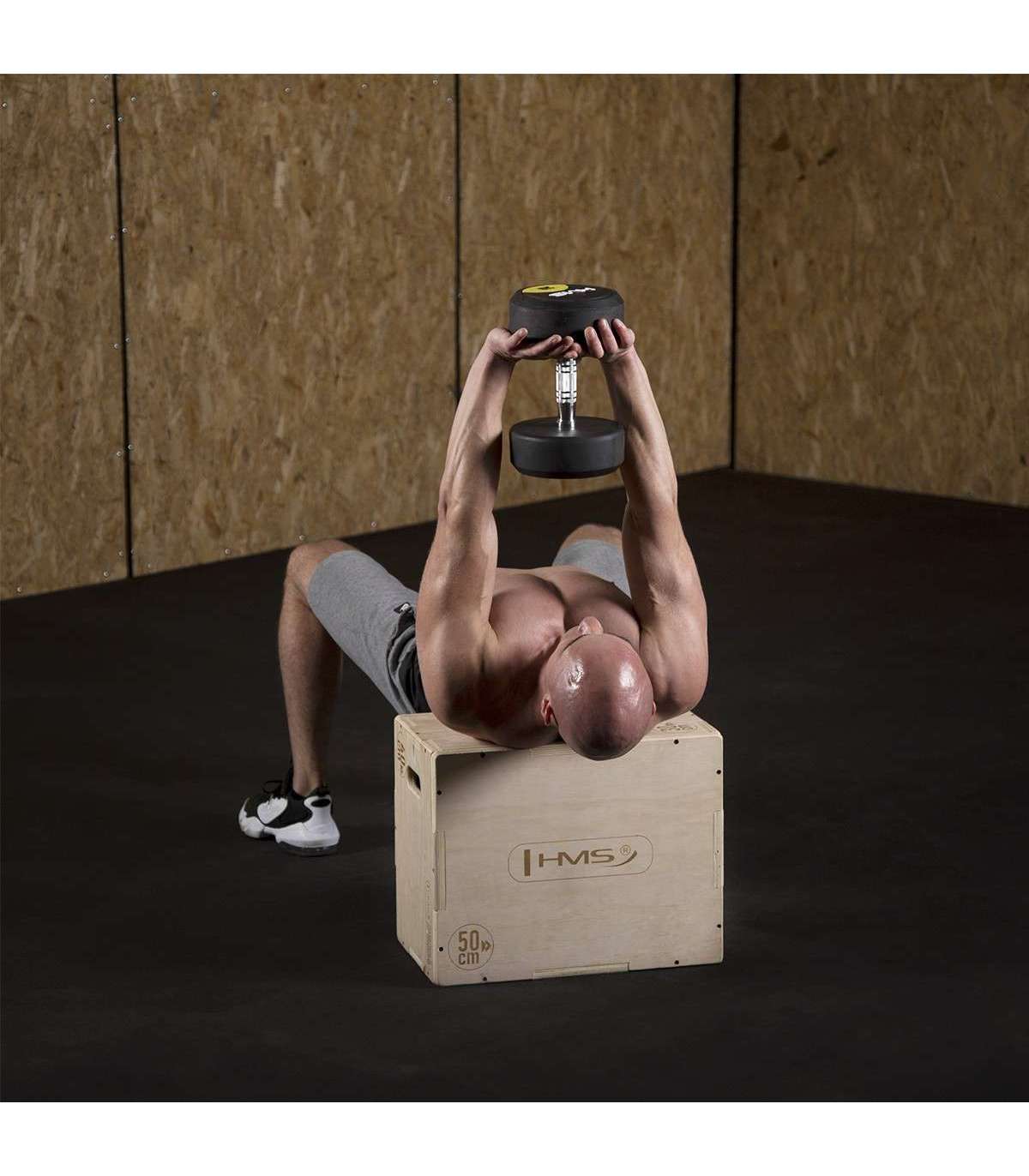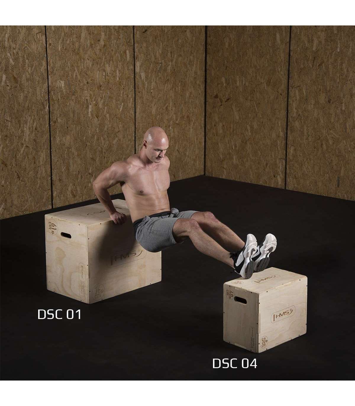 DSC04 HMS on puidust kast, mõeldud erinevat tüüpi cross-treeninguteks. Kui kasti pöörata külgedele, saab kolm erinevat kõrgust, mida saab kasutada vastavalt praktiku tasemele. Kasti materjaliks on vineer, mis on paigutatud pusle-laadsete ülekatetena, mis tagavad konstruktsiooni stabiilsuse ja vastupidavuse.
