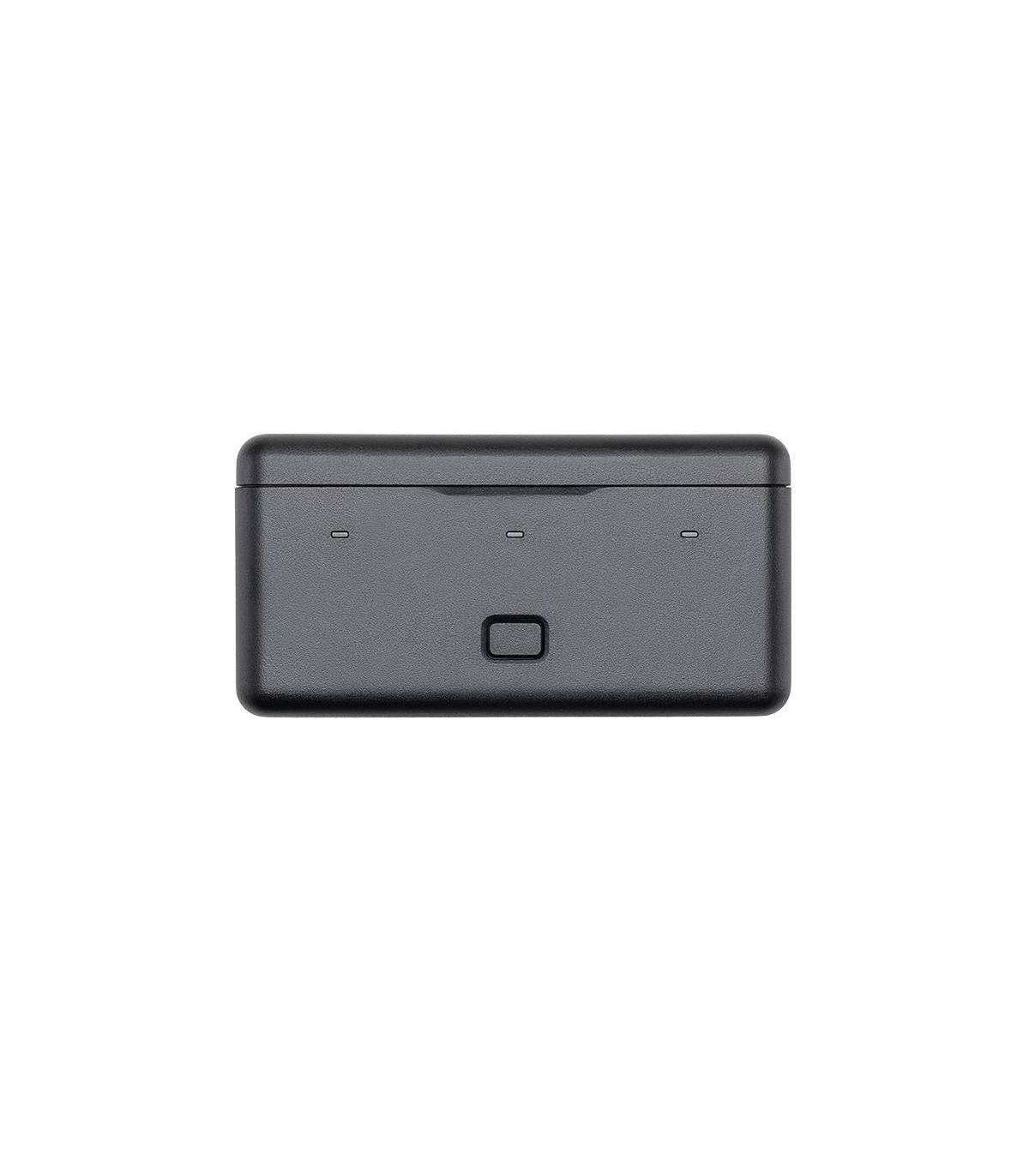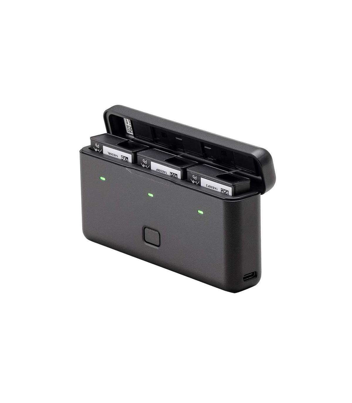 The case stores 3 rechargeable batteries and 2 microSD cards. It quickly charges the 3 batteries and can be used together as a powerbank to charge other devices such as a smartphone.