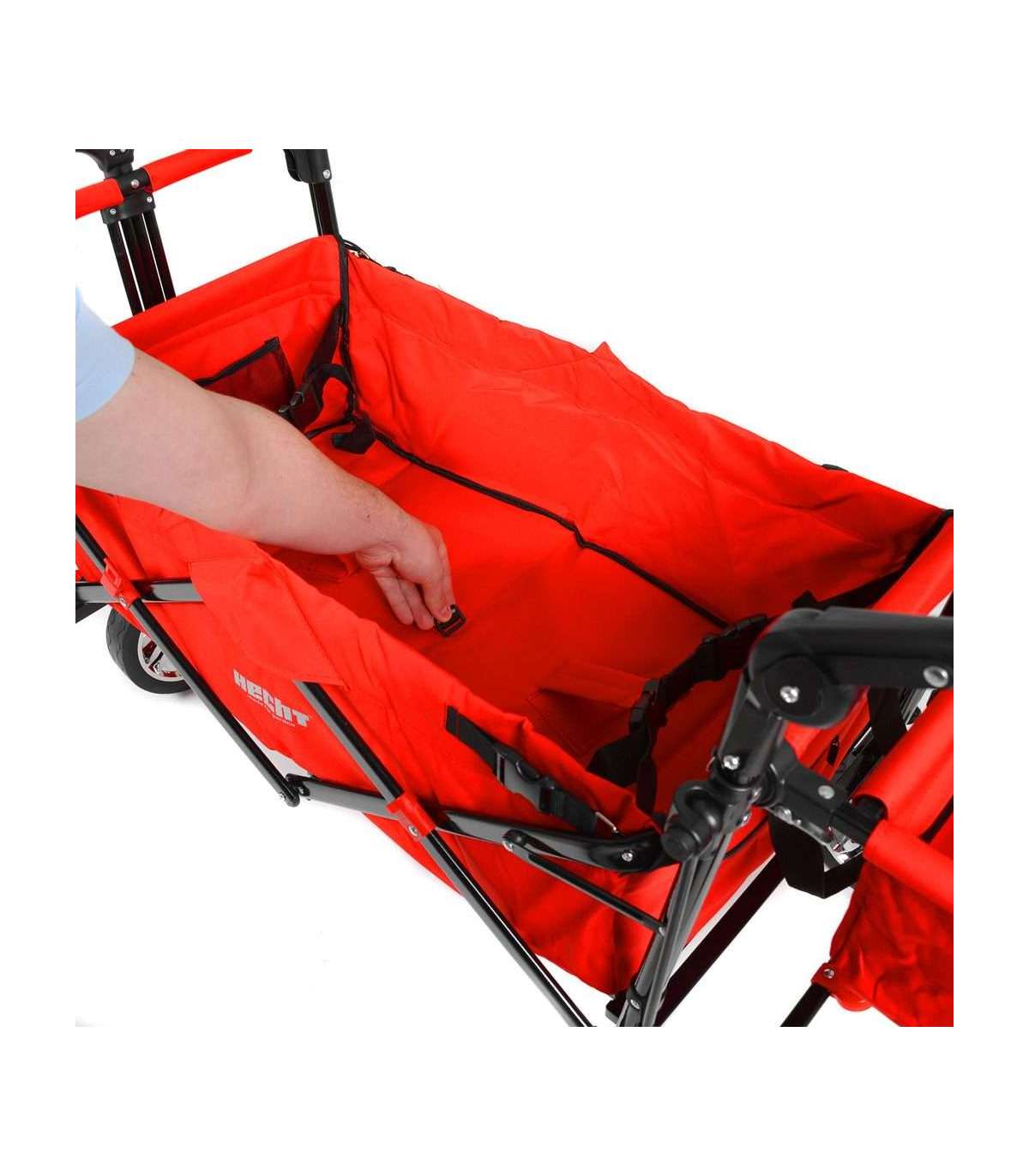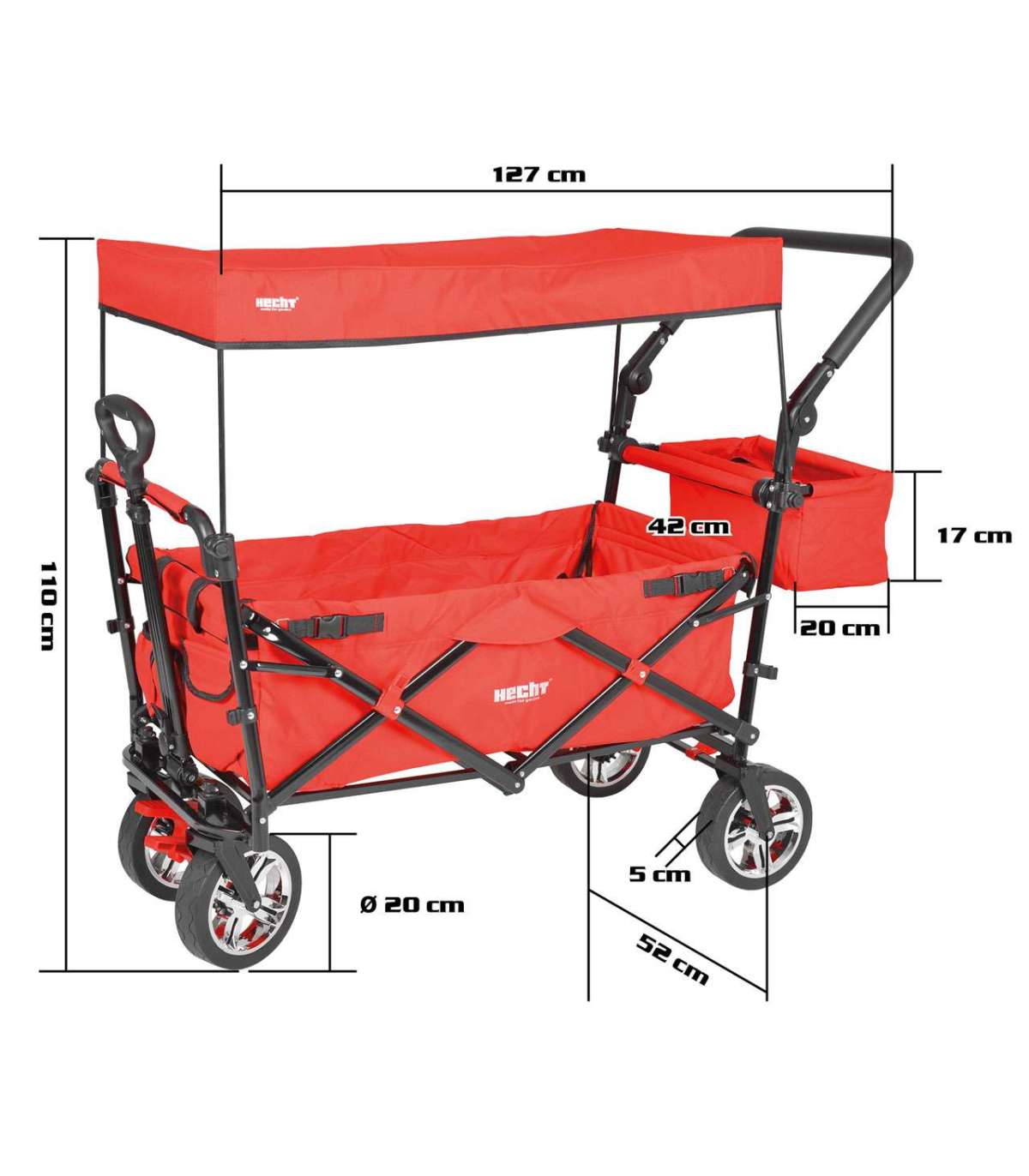 HECHT 50006 vabaajakäru on ideaalne lahendus vanematele ja peredele, kes soovivad oma lastega õues aega veeta. Tänu tugevale pulbervärvitud teraskonstruktsioonile ja vastupidavale polüesterkattele ei ole käru mitte ainult tugev, vaid ka kerge ja hõlpsasti kaasaskantav. Kuni 80 kg kandevõimega mahutab see lapsi ja nende mänguasju ning tänu kahele turvavööle ja esipiduritele tagab transpordil maksimaalse ohutuse. Vanker on konstrueeritud nii, et seda oleks lihtne kokku panna, mistõttu on seda lihtne hoida ja transportida. Suured rattad (5 / 20 cm) tagavad stabiilsuse ja mugava sõidu ka ebatasasel maastikul. See käru on suurepärane abimees perereisidel, pargis jalutuskäikudel või isegi ostlemisel.