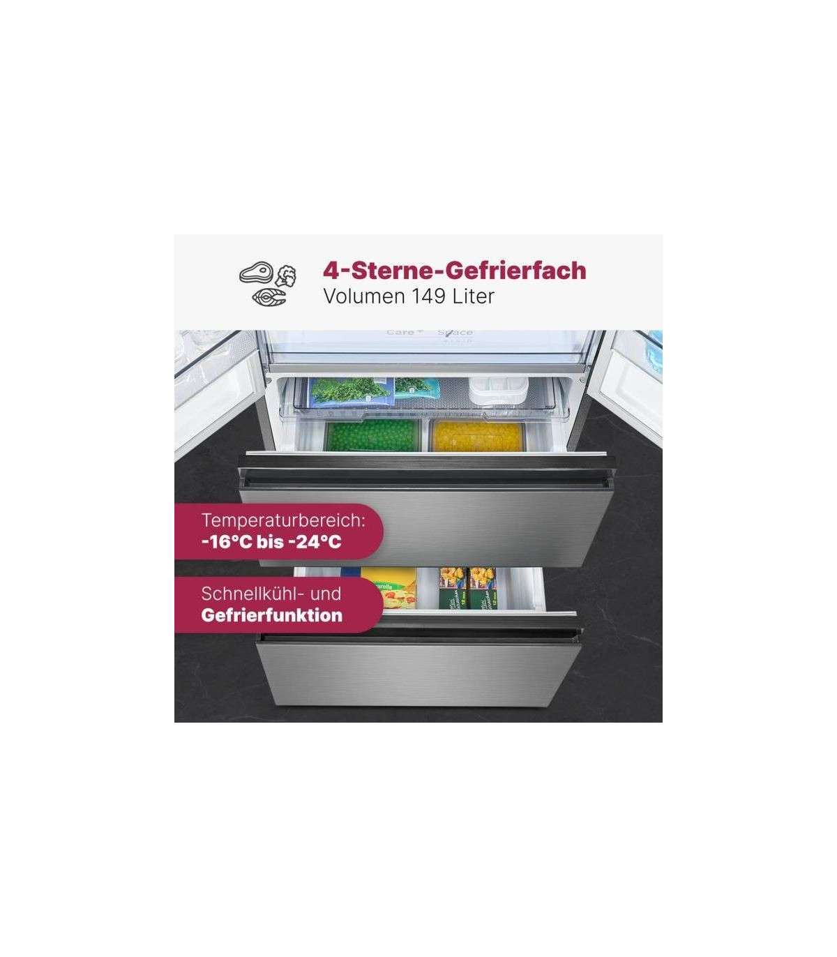 Kiirkülmutus (jahekapp + sügavkülm) - külmiku sisetemperatuur langeb viivitamata funktsiooni aktiveerimisel, aidates pikendada toiduainete säilivusaega.