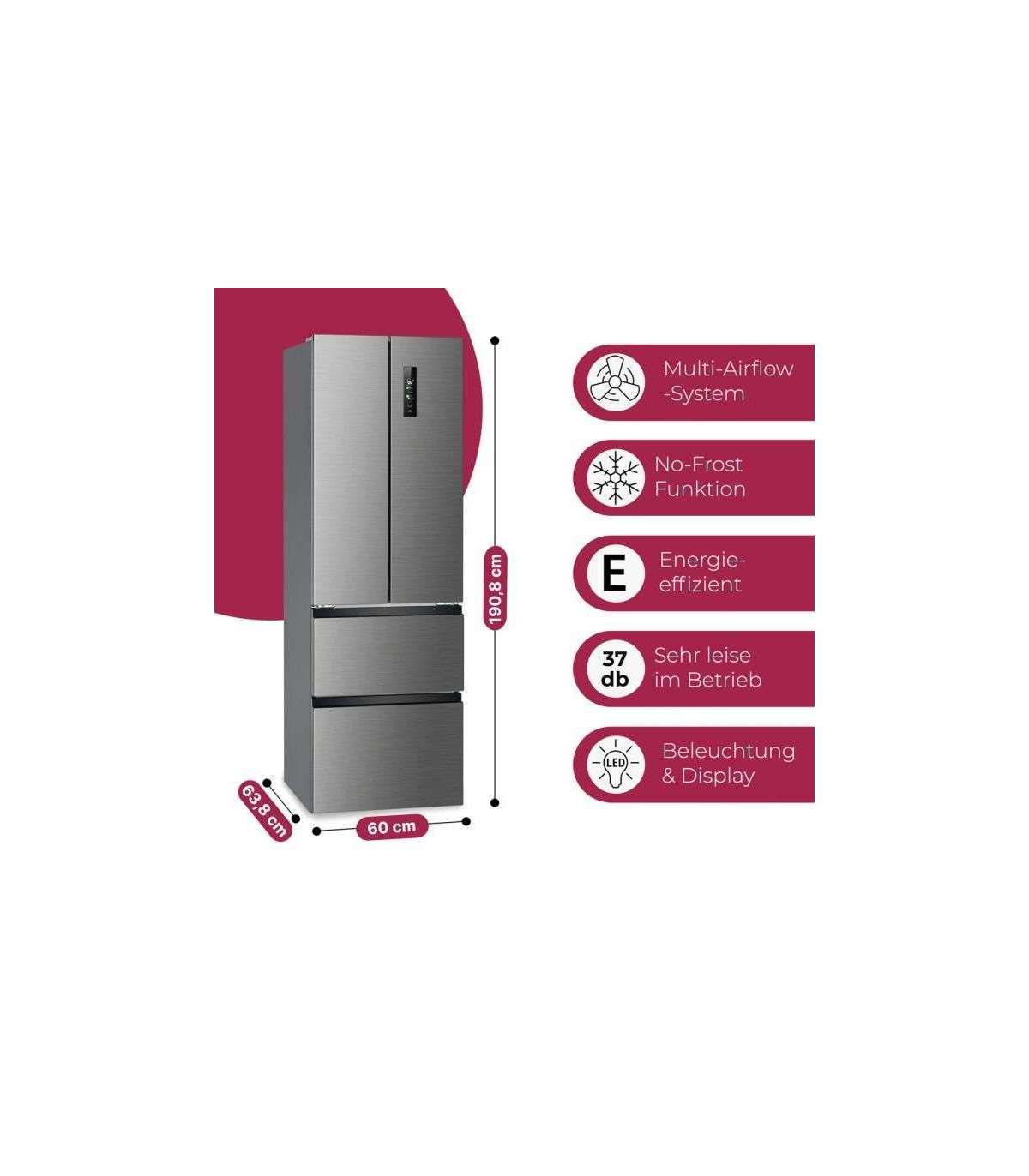 MultiAirflow-süsteem: optimaalne õhuringlus ja ühtlane õhu jahutus nii külmikus kui ka sügavkülmas. MultiAirflow tekitab ühtlased ja pehmed õhuvood kõigil külmiku/sügavkülmiku tasanditel. Temperatuurimuutused vähenevad ja jahutusaeg lüheneb – nii säilitavad tooted oma maitse kauemaks.