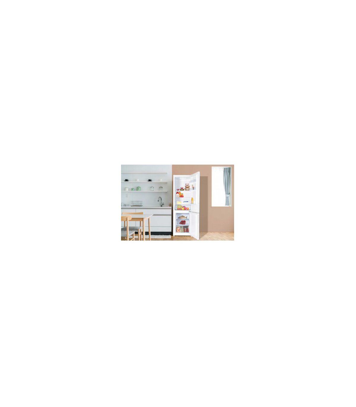 Kombineeritud külmik-sügavkülmik sobib ideaalselt kõikide toiduainete säilitamiseks, pakkudes 157 liitrit hoiuruumi.