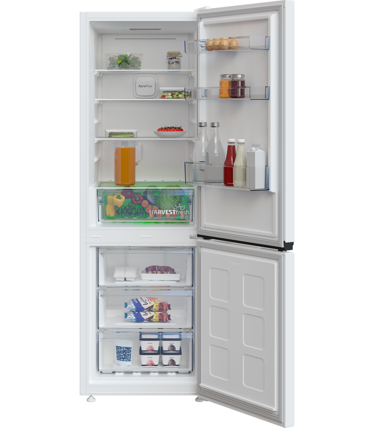 AeroFlow uue põlvkonna kaheosaline NoFrost jahutustehnoloogia kasutab kahte eraldi jahutussüsteemi külmiku ja sügavkülmiku osade jaoks. Igale riiulile võrdse jahutustemperatuuri tagamine säilitab pikemaks ajaks toidu värskuse, vormi, C-vitamiini sisalduse, mahlasuse, elava ja särava välimuse.