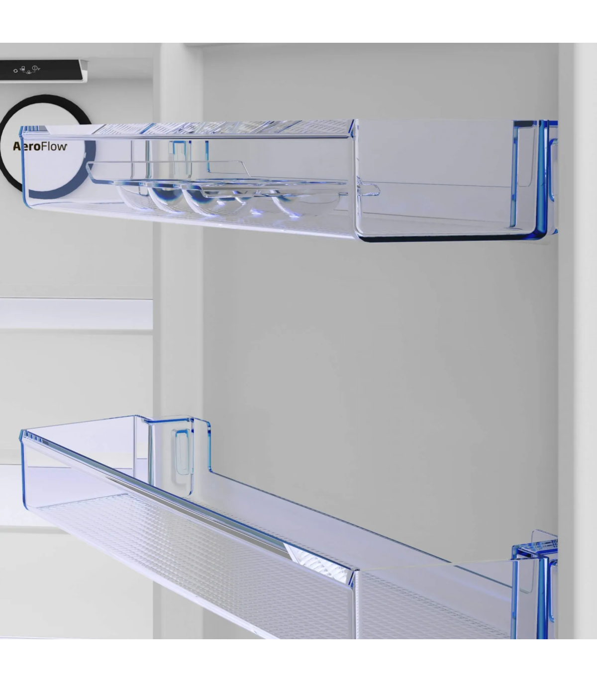 AeroFlow uue põlvkonna kaheosaline NoFrost jahutustehnoloogia kasutab kahte eraldi jahutussüsteemi külmiku ja sügavkülmiku osade jaoks. Igale riiulile võrdse jahutustemperatuuri tagamine säilitab pikemaks ajaks toidu värskuse, vormi, C-vitamiini sisalduse, mahlasuse, elava ja särava välimuse.