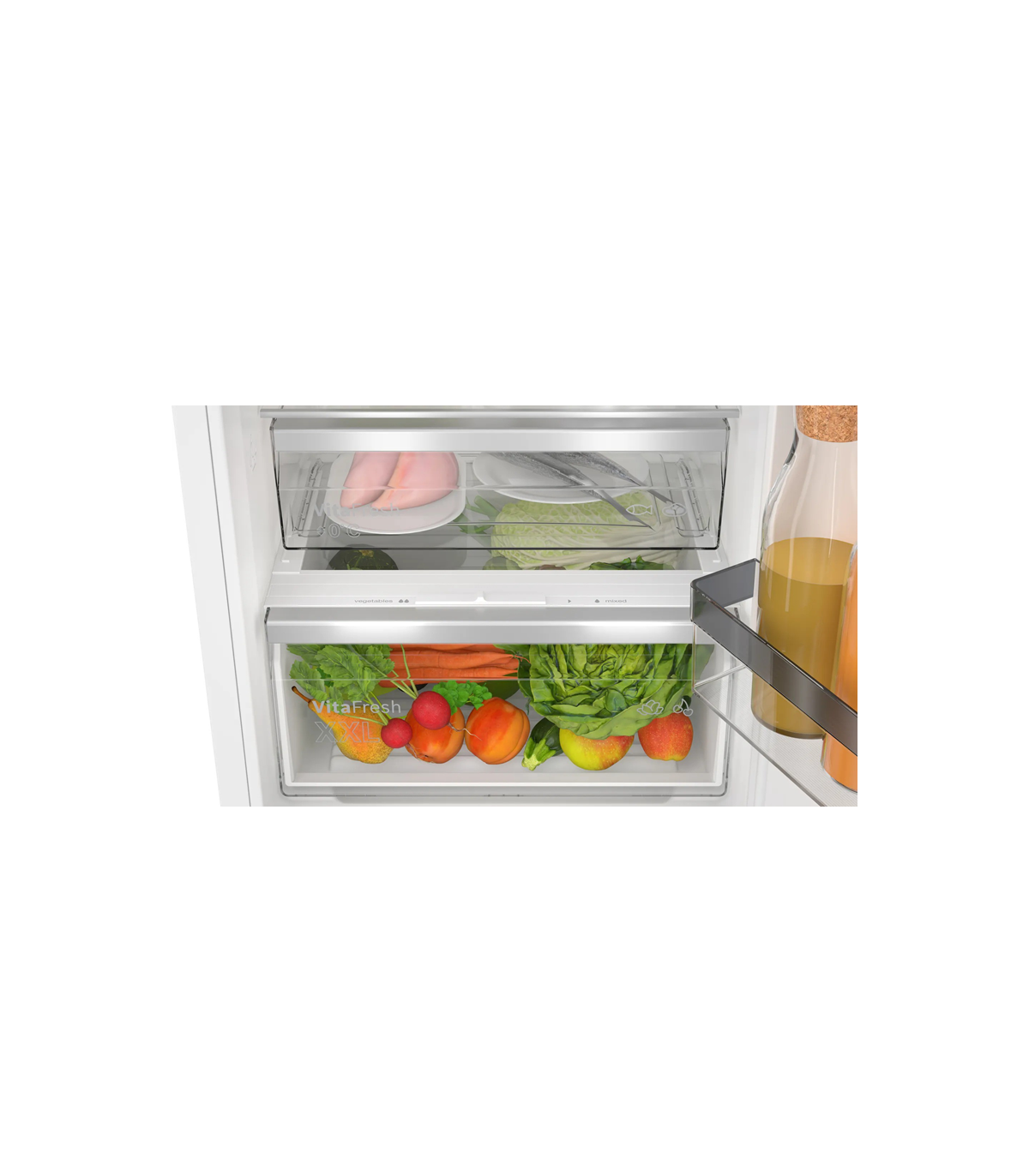 Rohkelt ruumi värsketele saadustele. Ruumikas VitaFresh XXL < 0 °C> süsteem pakub värskele toidule ideaalset säilituskeskkonda. Liha ja kala on võimalik hoida madalamal temperatuuril ning kohandatavate tingimustega sahtlis püsivad puu- ja köögiviljad tõeliselt värsked.