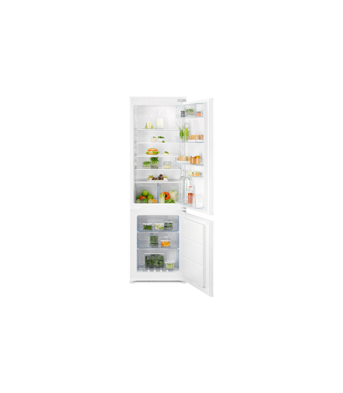 - Fully removable drawers and intermediate glass shelves in freezer