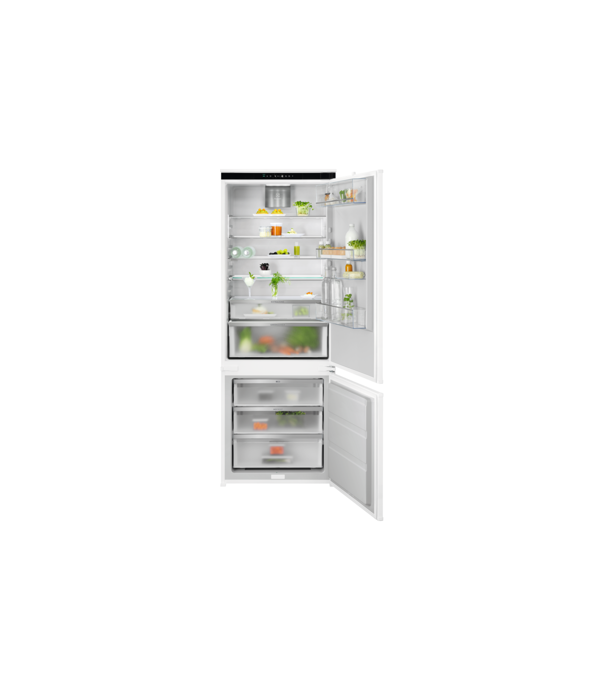 - Fully removable drawers and intermediate glass shelves in freezer