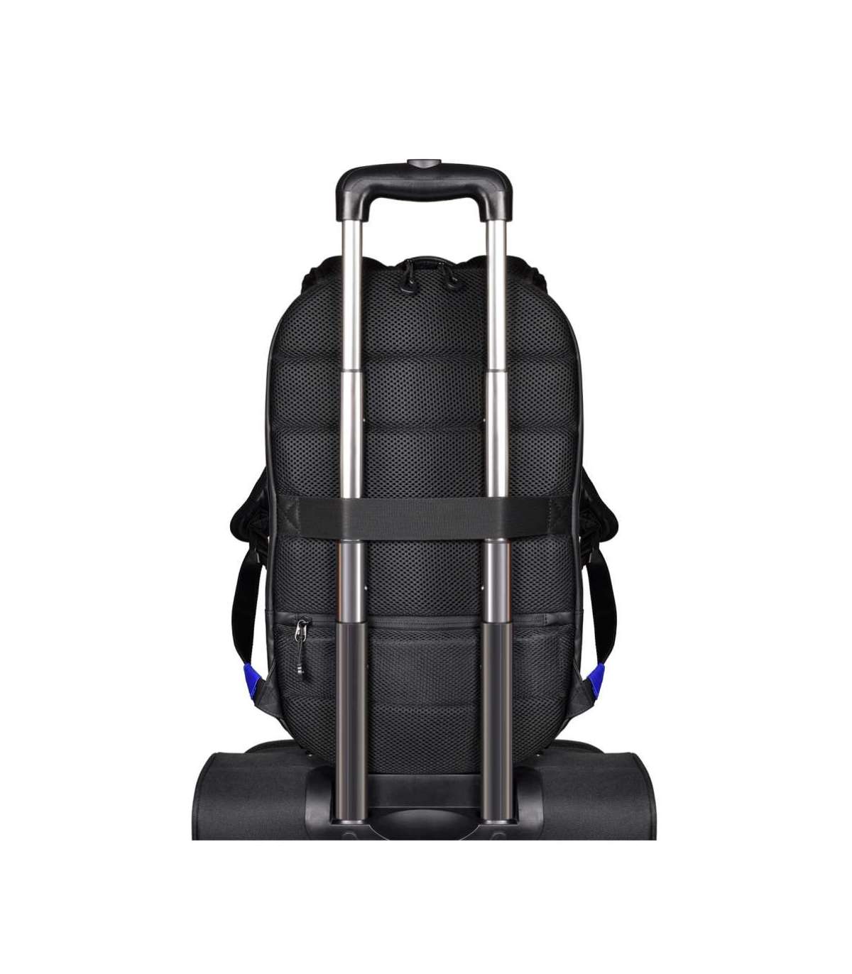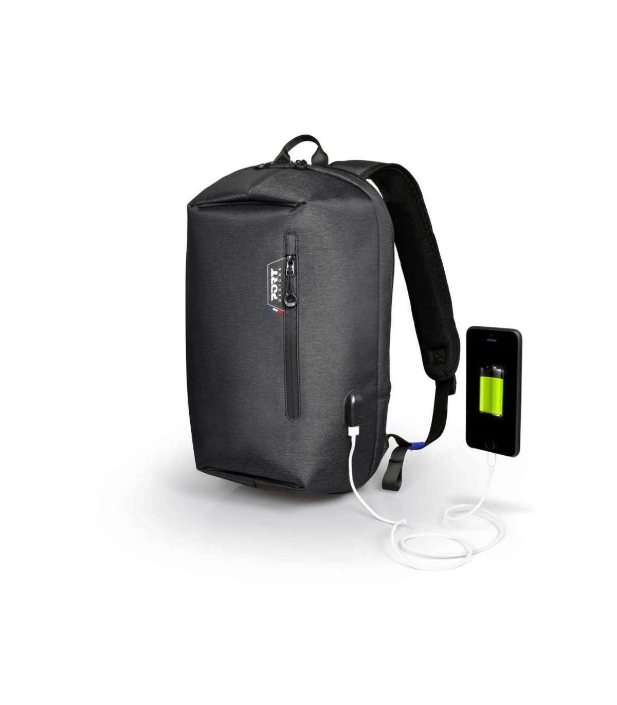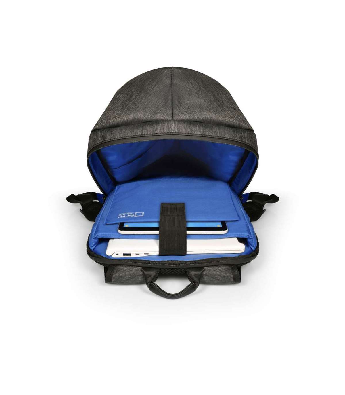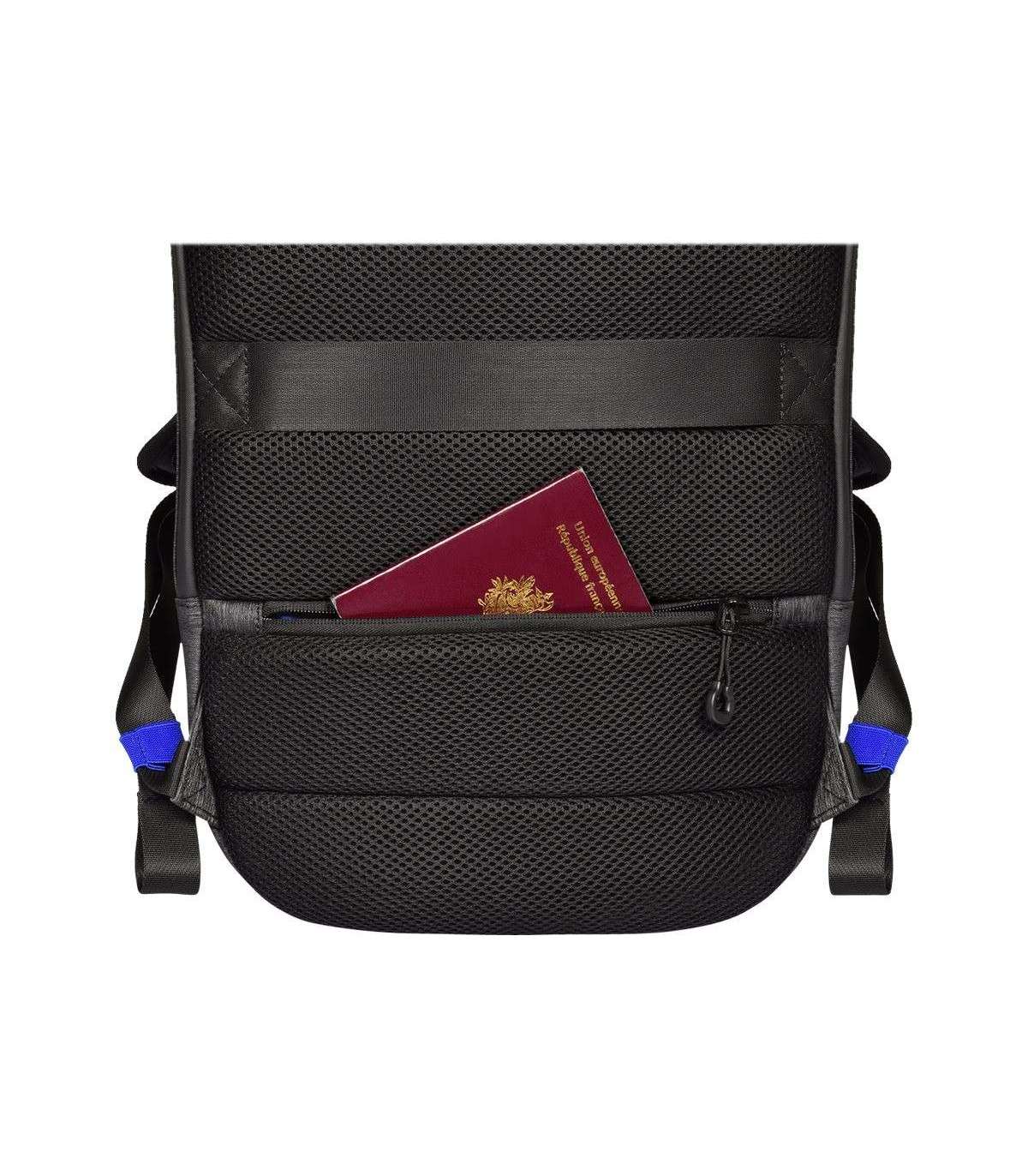 - Integrated USB port to charge your devices anywhere; Dedicated padded laptop 15.6'' & tablet up to 10'' compartments; Made with water-repellent polyester; Waterproof zippers; Adjustable lap belt; Trolley strap for rolling luggage handle