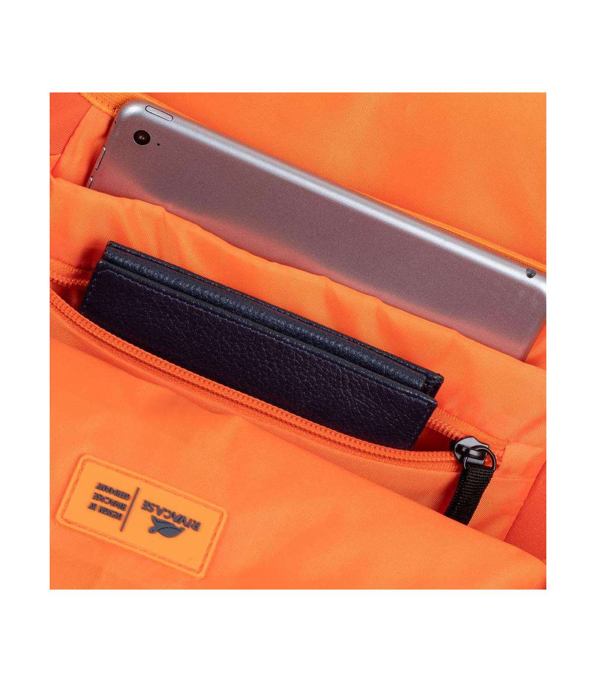 • The interior is made of contrasting orange lining.