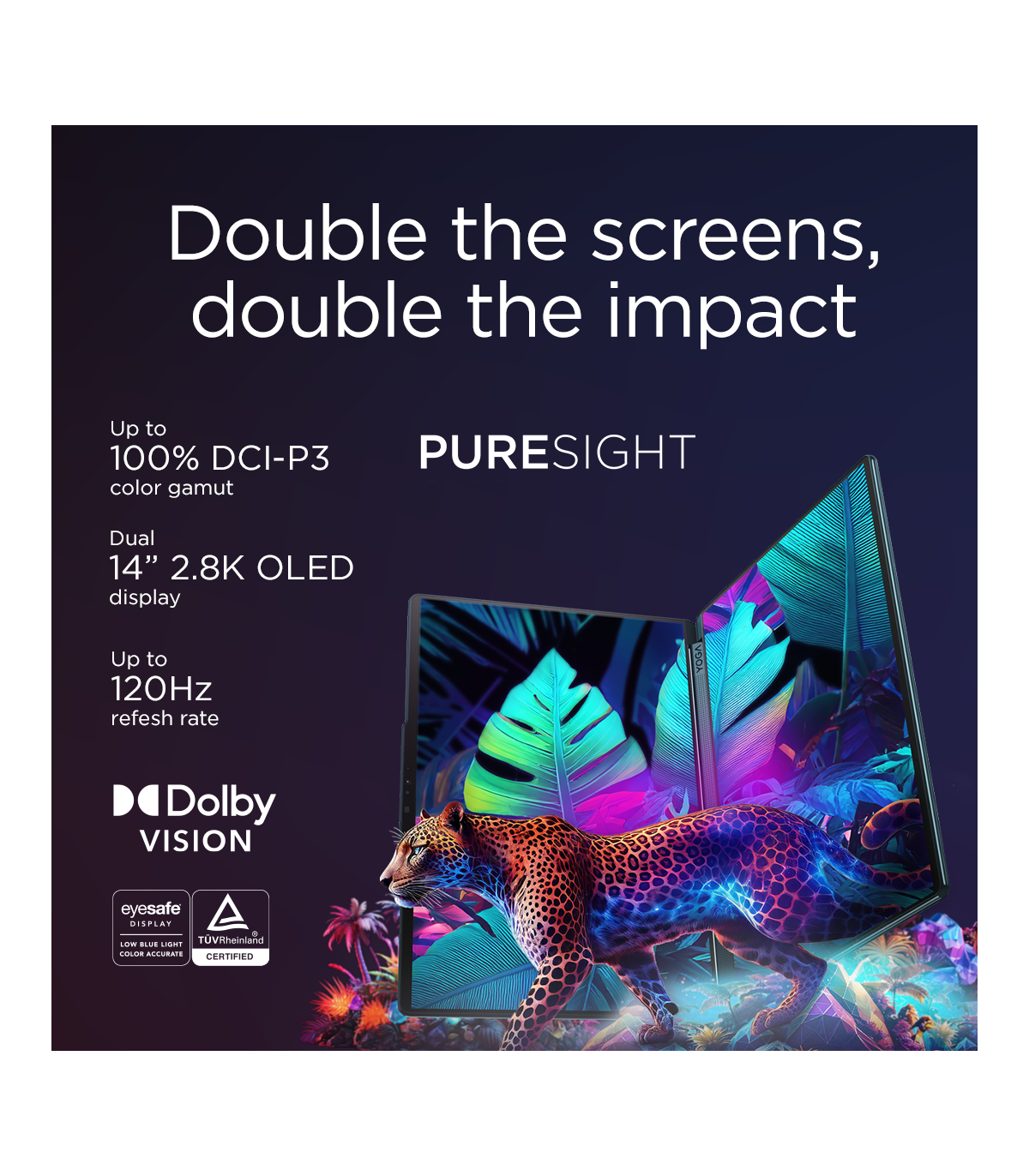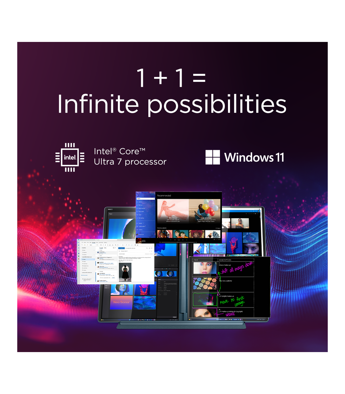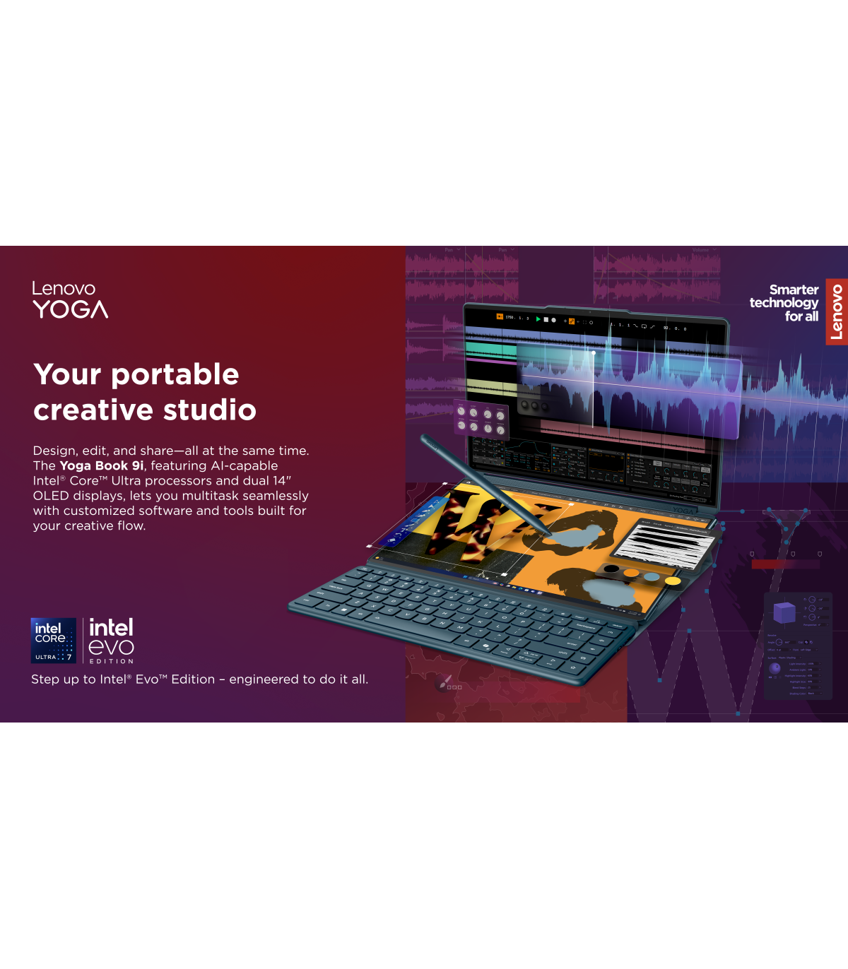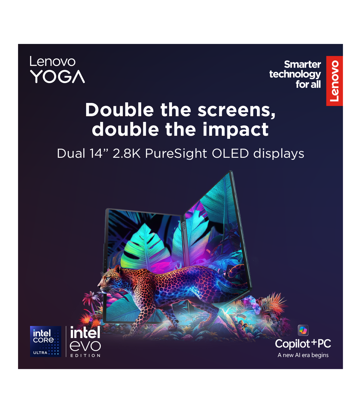 Lenovo Yoga Book 9 14IAH10 | Tidal Teal | 2x14 " | OLED | Touchscreen | 2.8K WQXGA+ | 2880 x 1800 pixels | Intel Core Ultra 7 | 255H | 32 GB | Soldered LPDDR5x | Solid-state drive capacity 1000 GB | Intel Arc 140T GPU | Windows 11 Pro | 802.11be | Bluetooth version 5.4 | Keyboard language English | Keyboard backlit | Warranty 24 month(s) | Battery warranty 12 month(s)