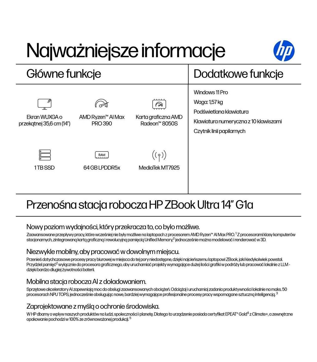 HP ZBook Ultra 14 G1a Ryzen AI Max PRO 390 14.0"WUXGA IPS 400nits AG 64GB LPDDR5x-8533 SSD1TB Radeon 8050S Cam IR 5 MPx
