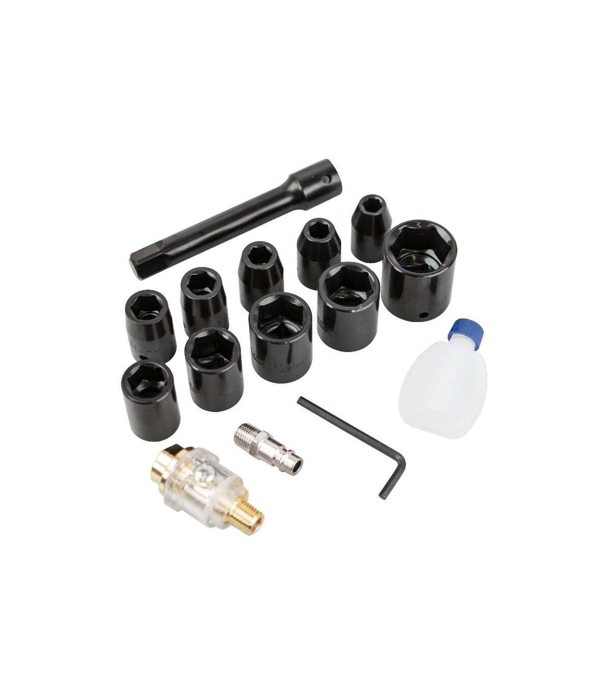 Komplekt sisaldab: löökmutrikeeraja, 10 x 1/2" löökpadrunit, tööriistaõli+ õlitaja