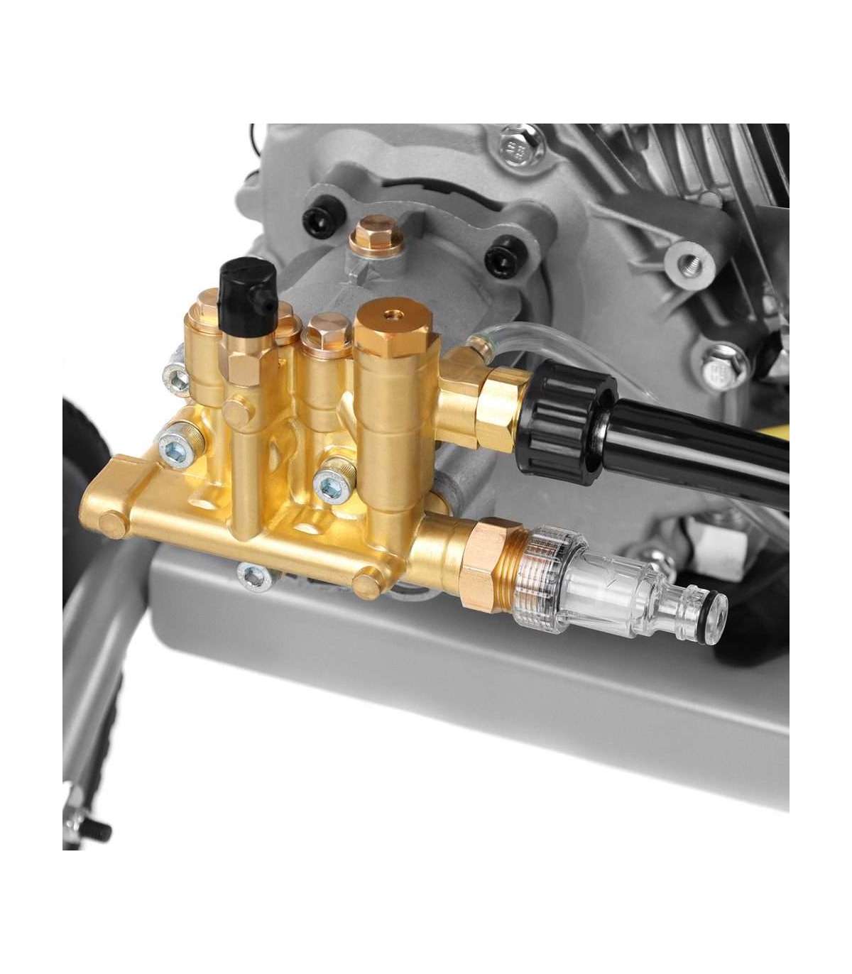 Bensiinimootoriga survepesur. Komplektis: kõrgsurve voolik pesupüstoliga kogupikkusega 8 m, 5 vahetatavat otsikut, pesuaine paak,  pesupüstoli hoidja.   Mootor: Hecht 4-taktiline Mootori töömaht: 208 cm3 Mootri tüüp : Bensiinimootor Max. rõhk: 250 bar Töörõhk: 180 bar Max. veekogus: 600 l / h Kaal 35 kg