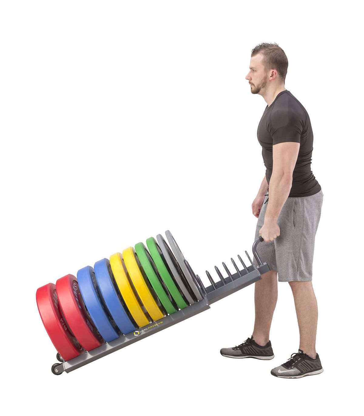 WPT01 HMS PREMIUM is a weight plates trolley.It makes it easier to maintain order and transport the weights at any gym. Material of the rack is a strong steel, which allows a maximum load equal 250 kg. Thanks to the strong and stable castors installed to the trolley transporting such a weight is not a problem. For even greater comfort the trolley is equipped with a handle covered with a non-slip material ensuring a firm and secure grip.WPT01 HMS PREMIUM will definitely make it easier to store the load and move it between exercise stations.Specification:Material: steelDimensions:Length: 145 cmWidth: 34 cmHeight: 28 cmCompartment width (from the widest one): 2 x 11 cm, 2 x 9 cm, 2 x 7 cm, 2 x 5.5 cm, 2 x 3.5 cm, 2 x 4.5 cm, 2 x 4 cm, 2 x 3.5 cmHandle length: 12 cmGrip diameter: 32 mmNo. of compartments: 16Maximal load: 250 kgProduct weight: 15.4 kgRemarks:2-year warrantyImporter: Abisal Ltd. | Poland | 41-807 Zabrze | Pyskowicka Street 17 | e-mail: abisal@abisal.plAbisal Ltd.. declares that the products sold by the company are safe and meet the requirements contained in the Act on General Product Safety of December 12, 2003. (Journal of Laws of December 31, 2003)