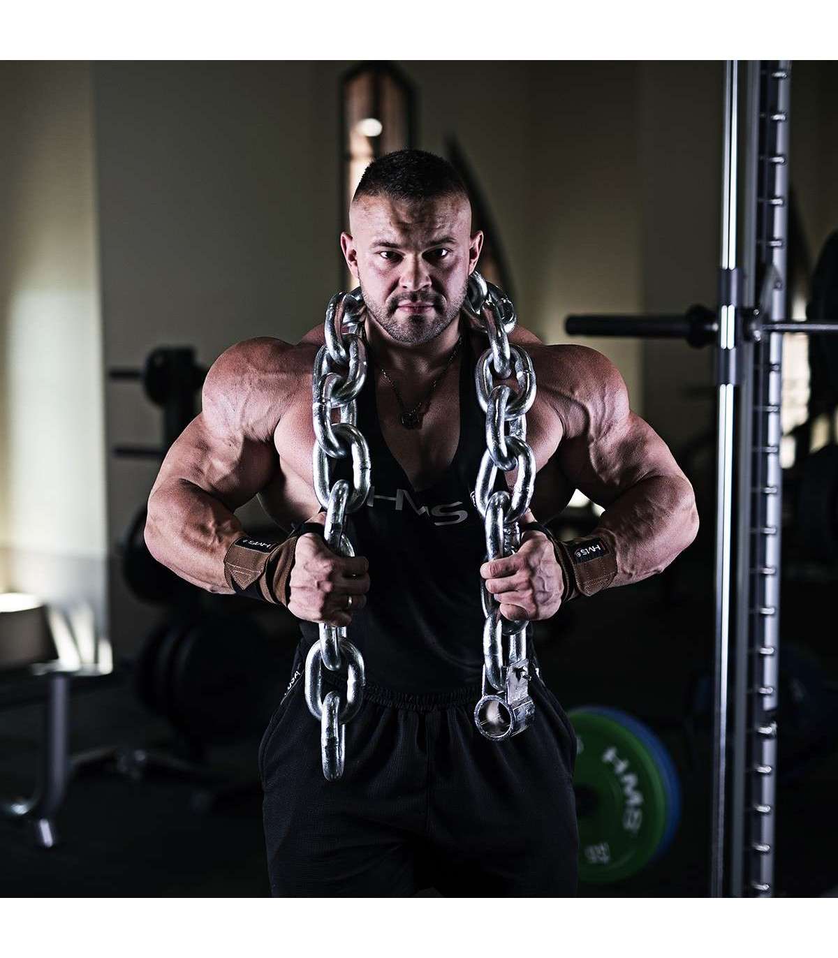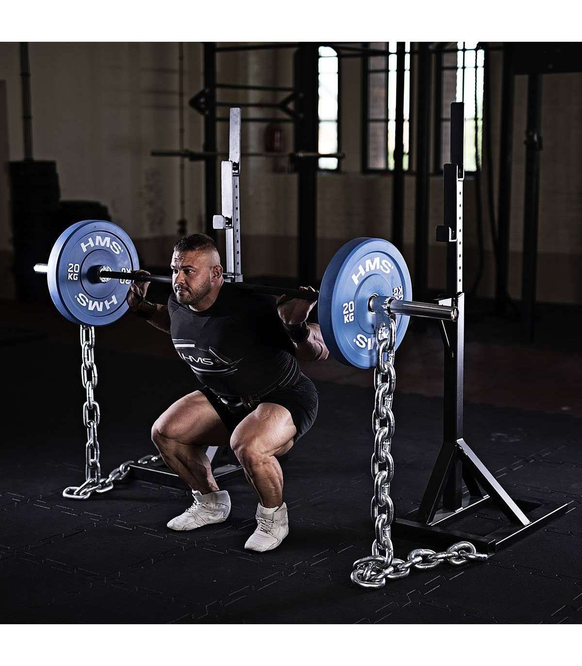 GR50 HMS are two durable chains to be fixed to the bar. The product is made of top quality steel.Its practical and lasting mounting system on the barbell makes it a universal tool to be used in your home gym. It fits well both on Olympic bars and regular ones. It is recommended for everyone who wants to fully use the potential of weight training.Individual links of each chain increase the barbell weight when they are lifted from the floor. The barbell weight reaches its maximum at the highest point of the lifting motion phase. When the barbell is lowered, the opposite situation takes place. The weight decreases proportionately to the length of the chain that is rested on the floor.GR50 HMS chains have a positive impact on physiological processes that take place in muscles during exercise. It involves using postactivation potentiation (PAP) - muscle strength improves if the phase of their initial activation is followed by a maximum increase of the contraction strength. The use of chains for strength training additionally helps to improve agility.Specification:Width of chain links: 9.5 cmLength of chain links: 14 cmDiametre of chain links: 28 mmTotal length: 2x157 cmClamp diametre: 51 mmWeight: 2x25 kgRemarks:3-year warrantyImporter: Abisal Ltd. | Poland | 41-807 Zabrze | Pyskowicka Street 17 | e-mail: abisal@abisal.plAbisal Ltd.. declares that the products sold by the company are safe and meet the requirements contained in the Act on General Product Safety of December 12, 2003. (Journal of Laws of December 31, 2003)