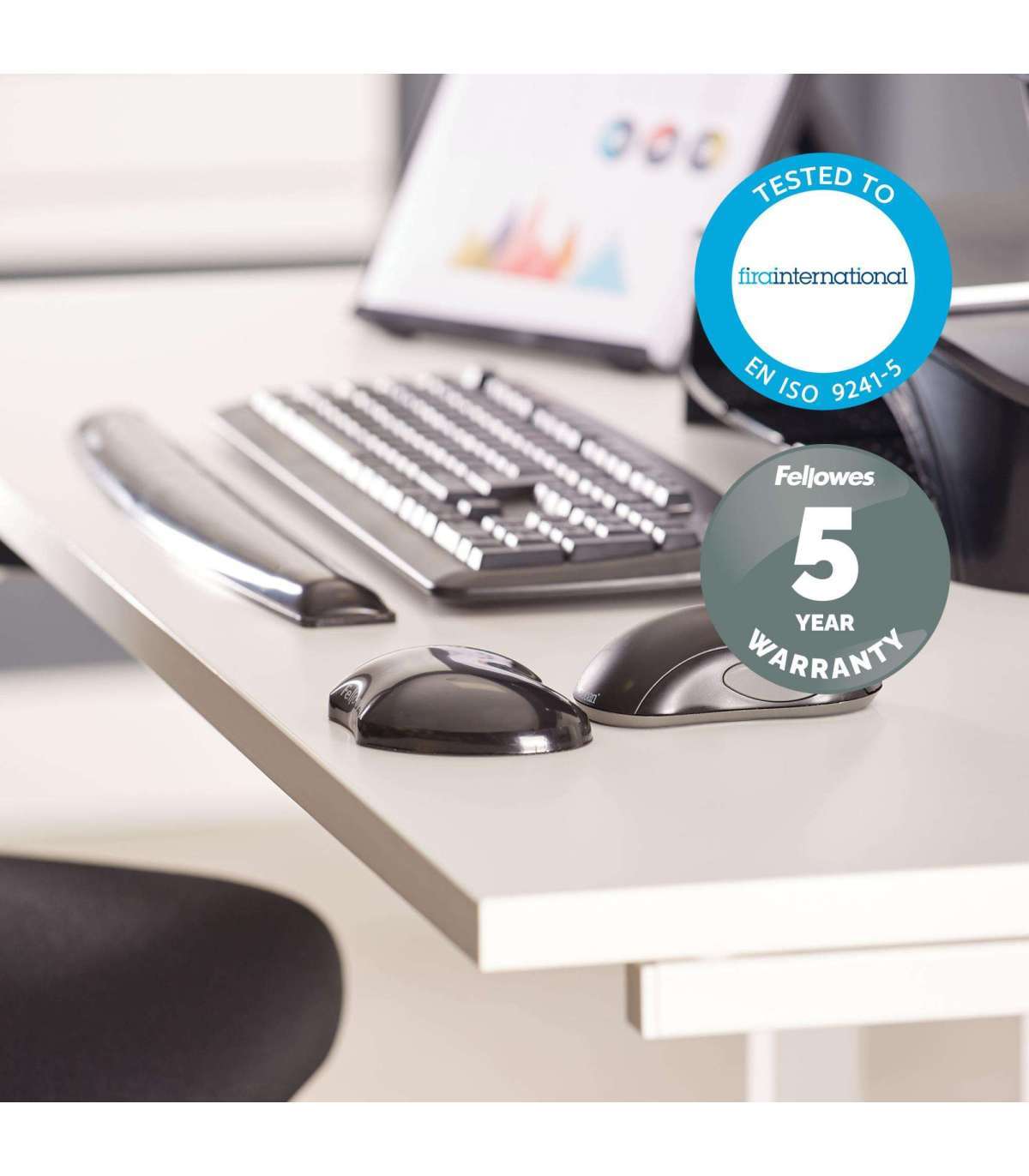 This self adjusting gel wrist rest allows personalised comfort as the wrist support has the ability to conform to your wrist, which helps relieve pressure and fatigue whilst typing. With the easy clean surface, the design allows you to wipe the wrist rest clean with a damp cloth, making it ideal for all environments. To prevent frustration in the workplace or at home, Fellowes have incorporated a non-skid rubber backing, which keeps it in place and prevents it from slipping around. Fellowes understand that bad working habits cause many of us physical health problems and fatigue. By using this knowledge Fellowes have created a comprehensive range of ergonomic solutions like this designed product that help you enjoy a more comfortable and productive workspace.