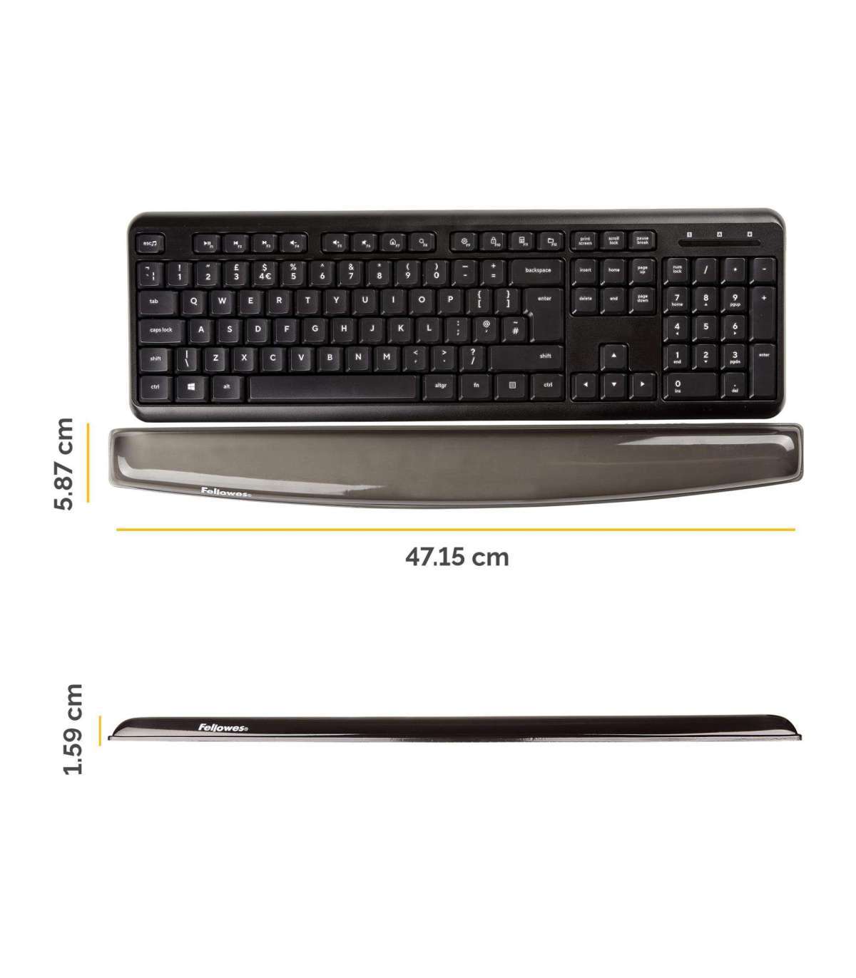 - PRODUCT DIMENSIONS - The dimensions for the Fellowes Crystals Gel keyboard wrist rest are: H15.9 x W58.7 x D471.5mm