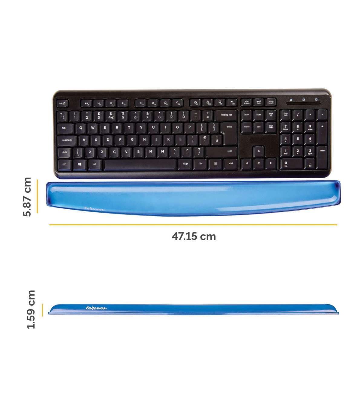 - PRODUCT DIMENSIONS - The dimensions for the Fellowes Crystals Gel keyboard wrist rest are: H15.9 x W58.7 x D471.5mm