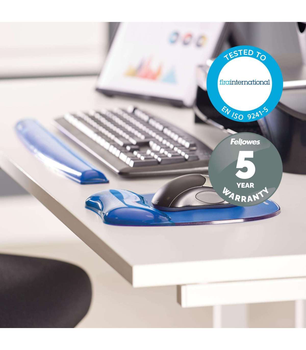 - VIBRANT DESIGN - Designed with style in mind, this Fellowes keyboard wrist rest compliments any workspace with its vibrant design and its soothing transparent gel which also provides comfort and support for your wrist