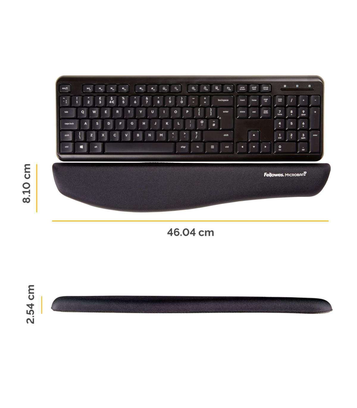 - PRODUCT DIMENSIONS - The dimensions for the Fellowes PlushTouch keyboard wrist support are: H25.4 x W460.4 x D81mm