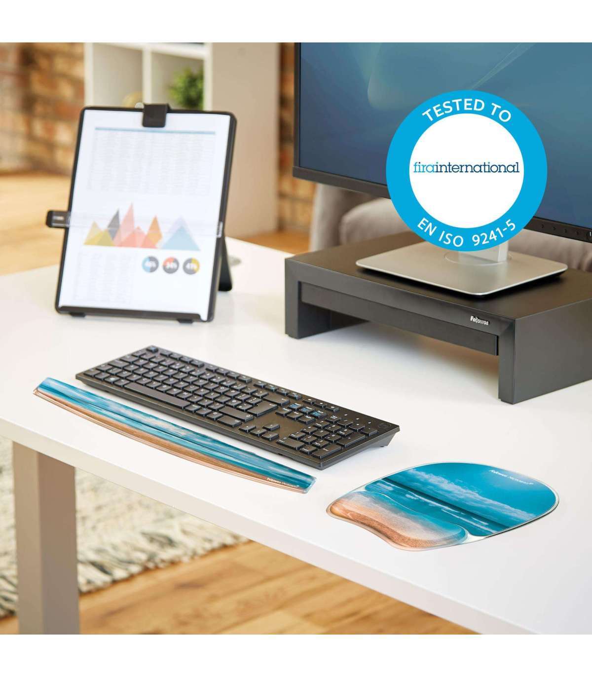 This self adjusting gel wrist rest allows personalised comfort as the keyboard support has the ability to conform to your wrist, which helps relieve pressure and fatigue whilst typing. With the easy clean surface, the innovative design allows you to wipe the keyboard wrist rest clean with a damp cloth, making it perfect for all environments. To prevent the growth of harmful bacteria on your office desk or in your home, this keyboard support also features built in microban protection which assists in keeping your wrist rest cleaner for the lifetime of the product. To prevent frustration in the workplace or at home, we have incorporated a non-skid rubber backing to the keyboard wrist support which keeps it in place and prevents it from slipping around. Fellowes understand that bad working habits cause many of us physical health problems and fatigue. By using this knowledge we have created a comprehensive range of ergonomic solutions like this innovatively designed product that help you enjoy a more comfortable and productive workspace.