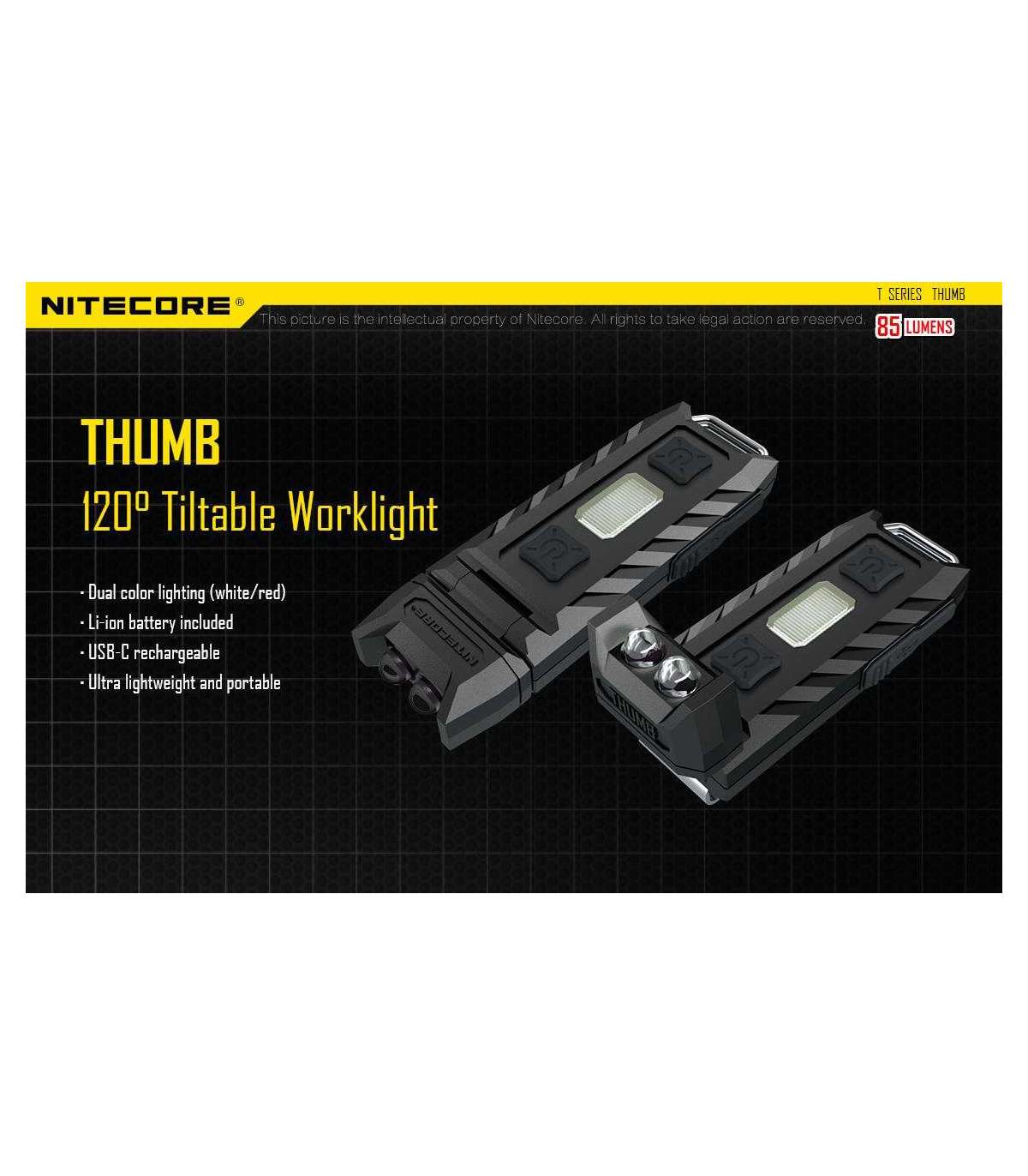 The NITECORE THUMB (model 1323311) is a compact, lightweight, and versatile USB-rechargeable LED light designed for everyday carry (EDC), outdoor activities, and hands-free work. It's known for its unique features that make it highly adaptable.