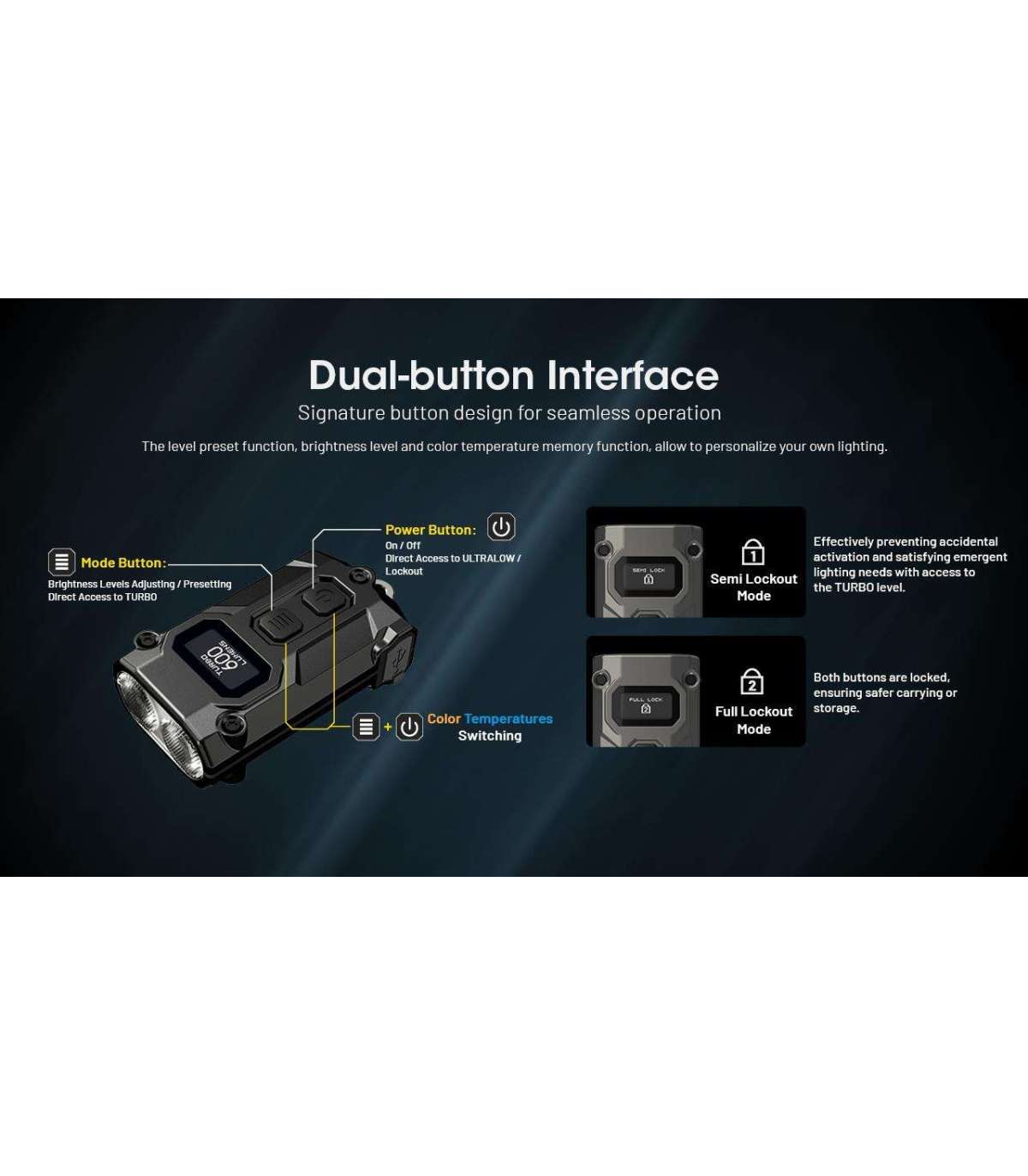 Dual-Button Interface: Offers intuitive control over its multiple brightness levels and features.
