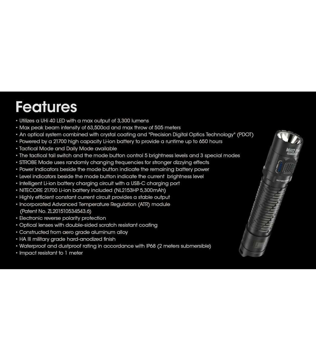FLASHLIGHT MH SERIES/3300 LUMENS MH12 PRO NITECORE