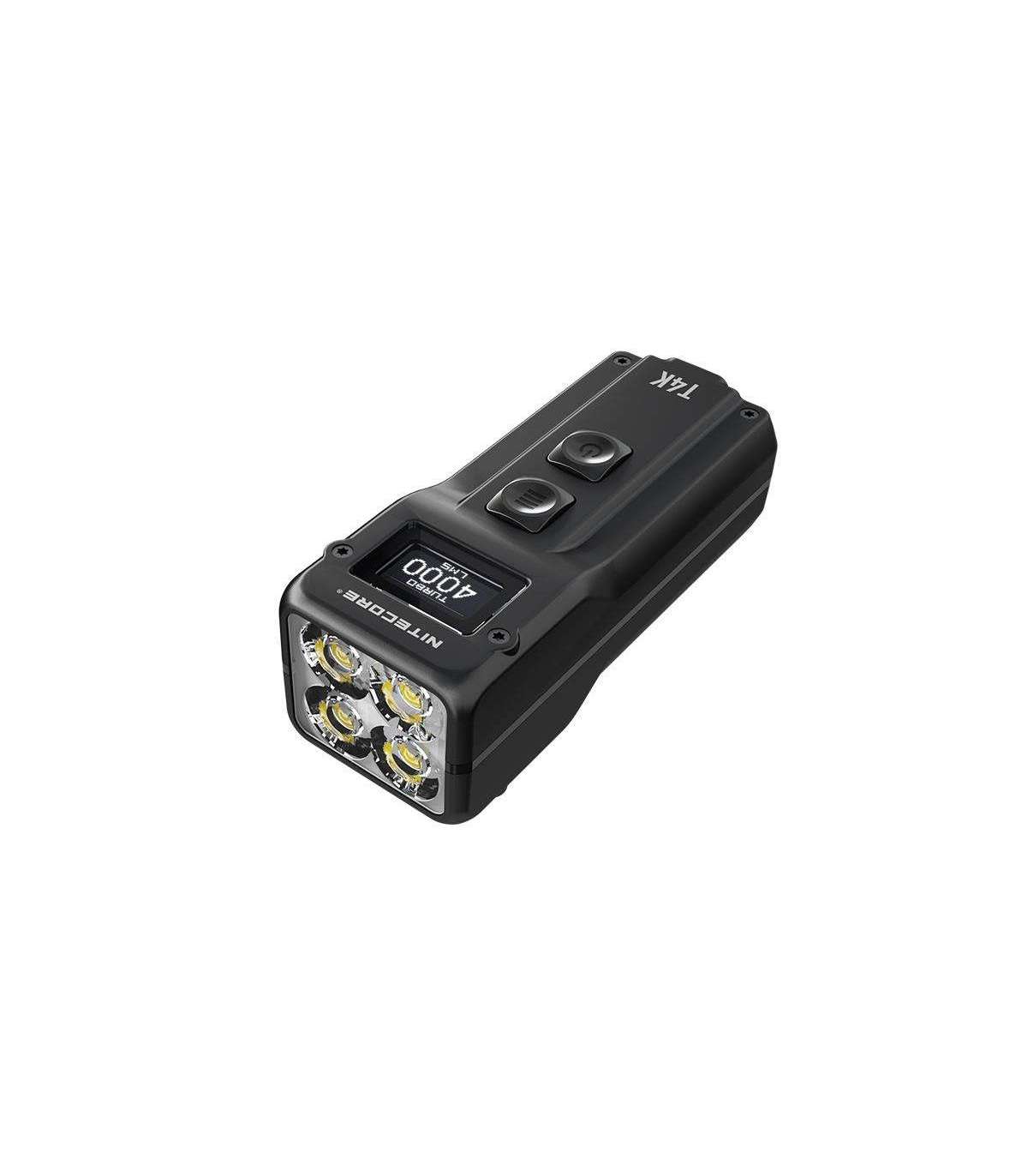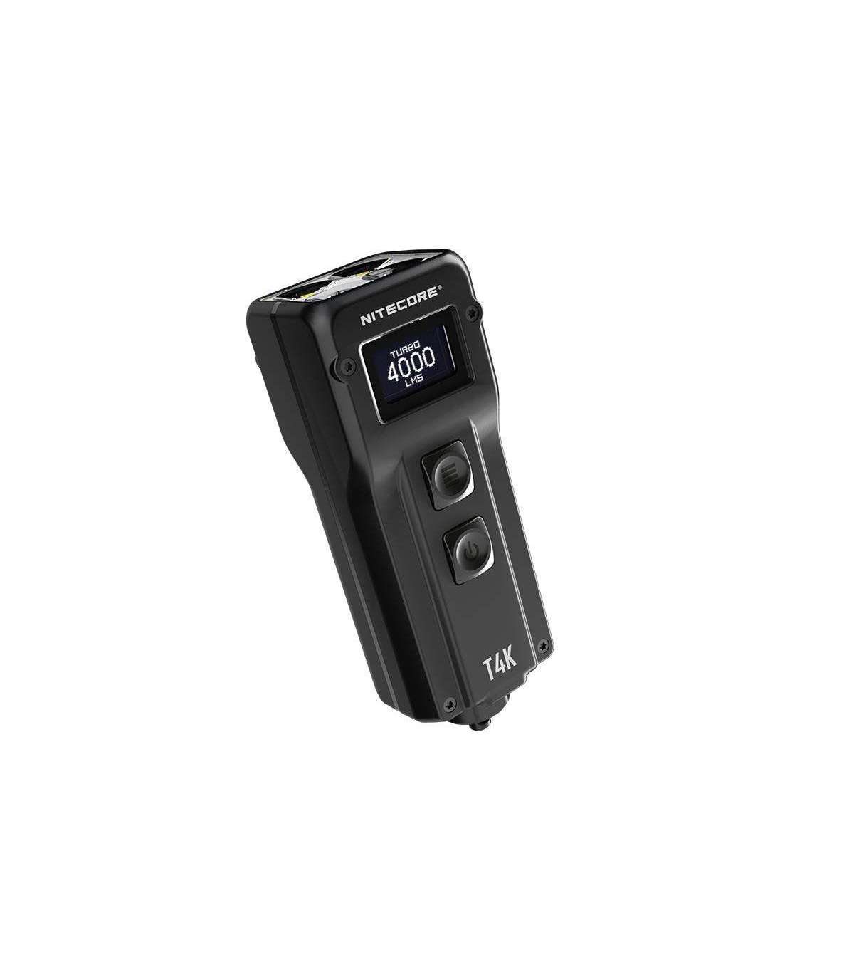 The Nitecore T4K keyring light has an incredible maximum output of 4000 lumens from the 4 x Cree XP-L2 V6 LEDs and is powered by a built-in, 1000mAh li-ion battery. The flashlight is rechargeable via a USB-C port at the base of the torch and comes with a USB-C to USB charging cable.