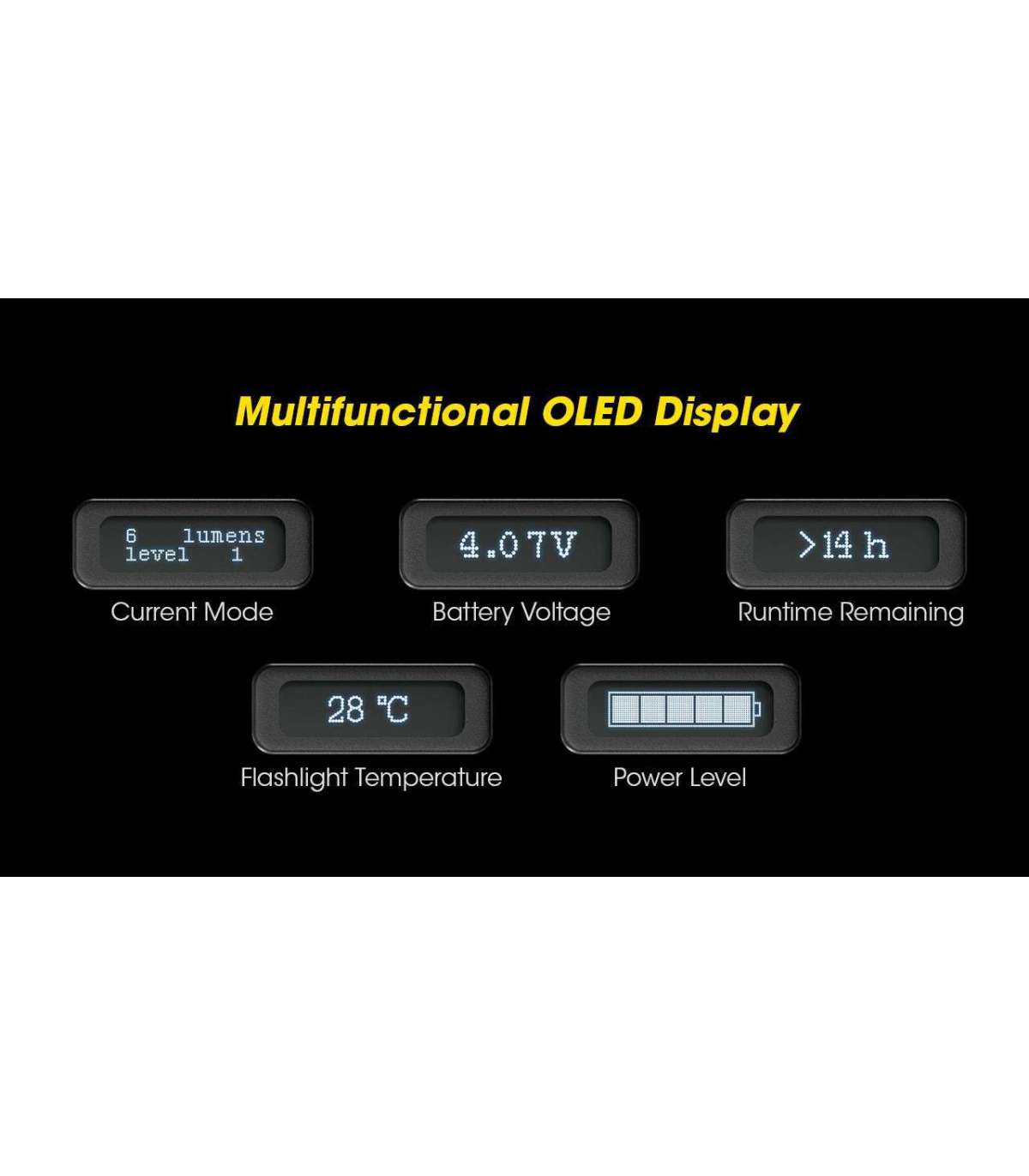 Advanced Temperature Regulation (ATR): Nitecore's ATR module regulates the output based on the working conditions and ambient temperature to prevent overheating and maintain optimal performance. The OLED display also shows the temperature.